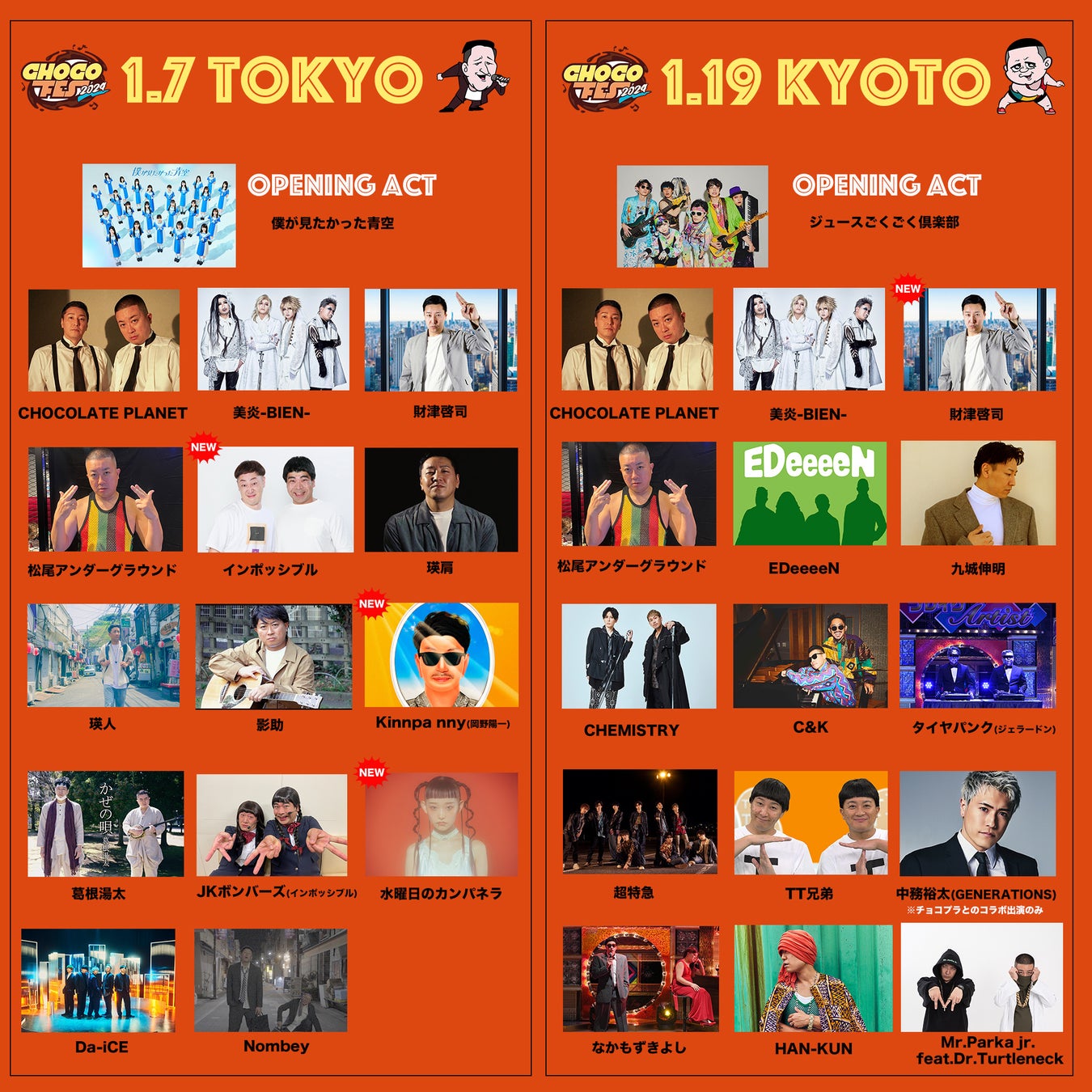 ・インポッシブル(※New!) ・Kinnpa nny(岡野陽一) (※New!) ・水曜日のカンパネラ(※New!)
