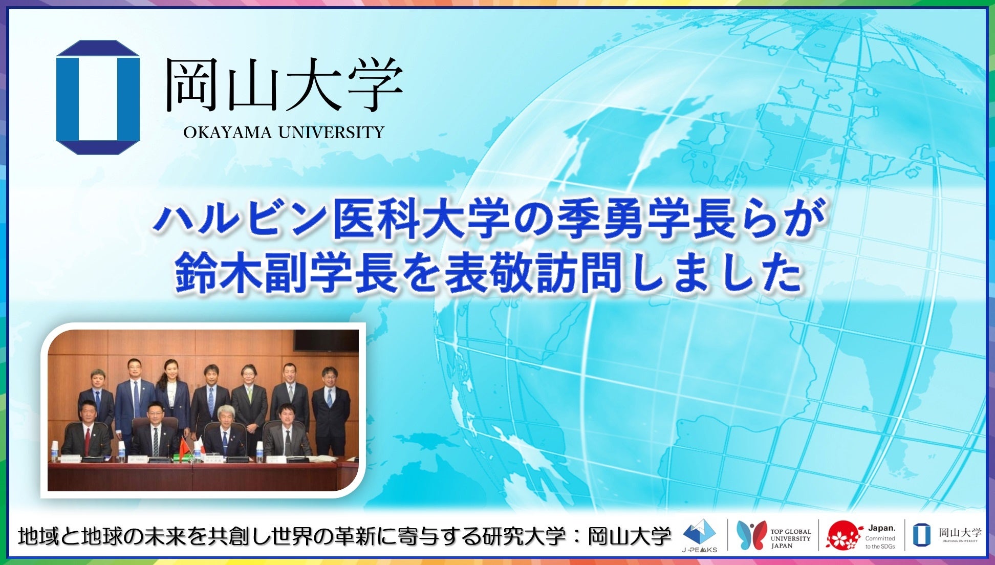 【岡山大学】ハルビン医科大学の季勇学長らが鈴木副学長を表敬訪問しました