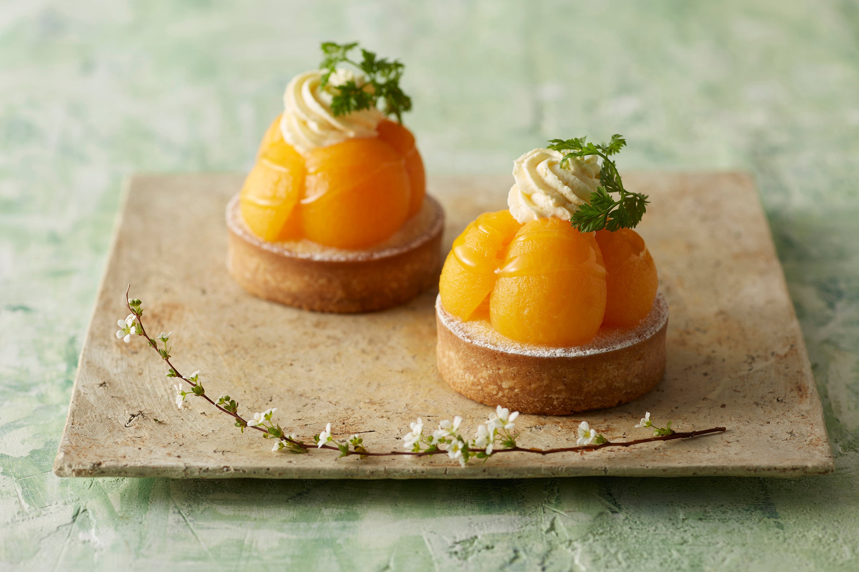「Bakery & Pastry Shop」では、旬のフルーツをふんだんに使用したスイーツ・パンを合計6種類販売いたします。ペストリー商品では「メロンのヴェリーヌ」「びわのタルト」「抹茶のガトー」「オレンジのオペラ」、ベーカリー商品は「Thé vert(テ・ヴェール)」「丹波の黒豆と抹茶のブレッド」が登場。フレッシュなフルーツと抹茶や黒豆など和の素材とのコントラストが楽しい商品ばかりです。