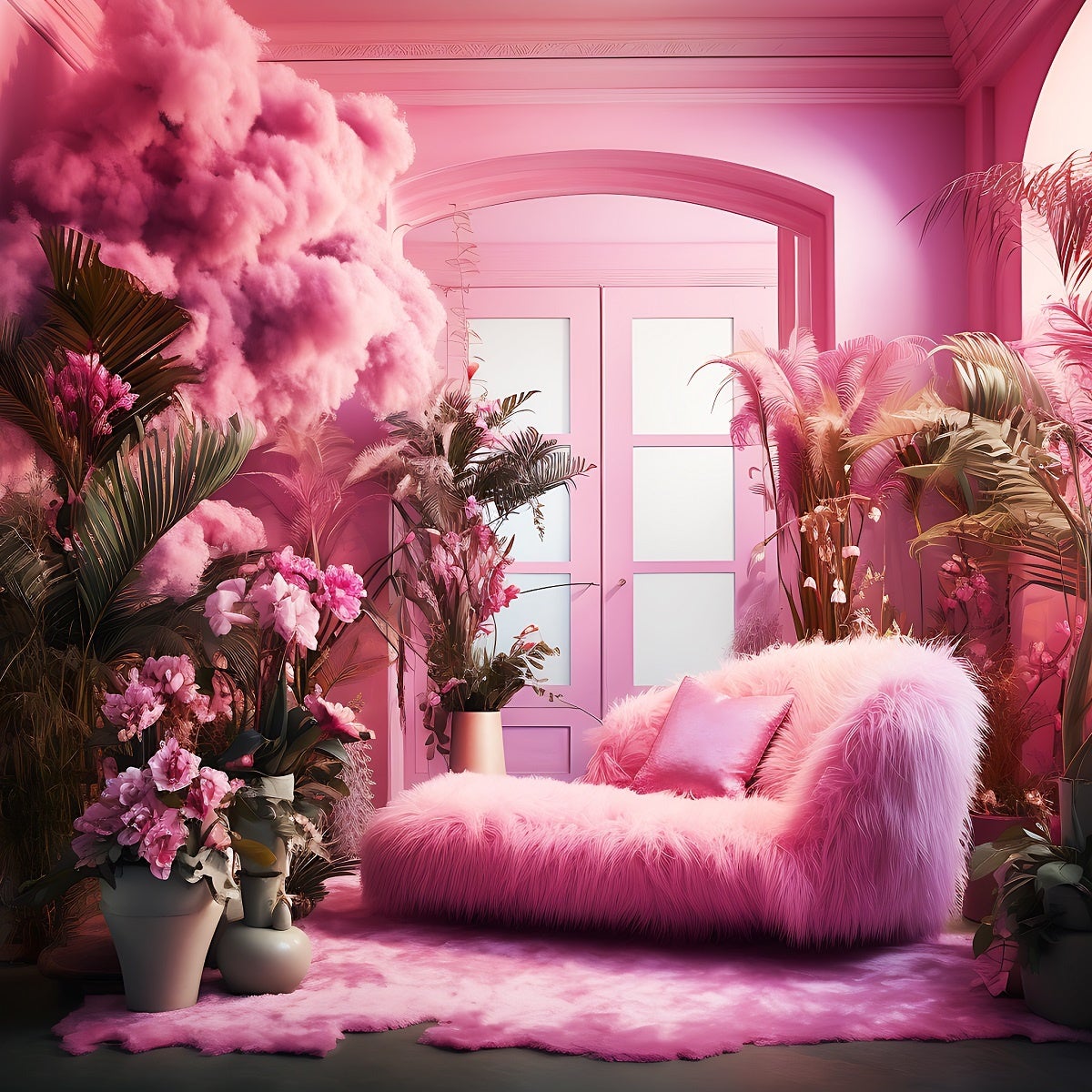 結果、シャンパンピンクとグリーンの幻想的な世界の中に、実在しないAIモデルが佇む本グラフィックが完成しました。