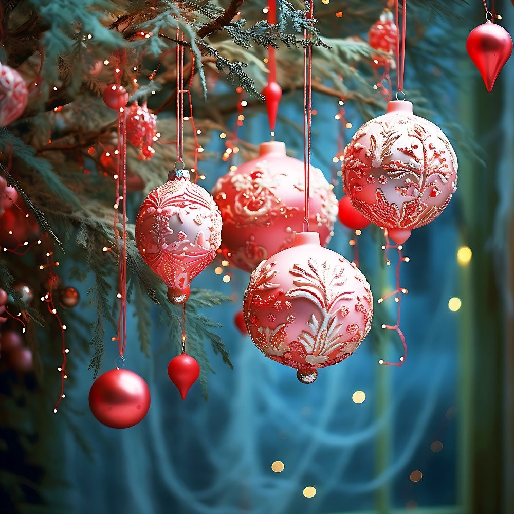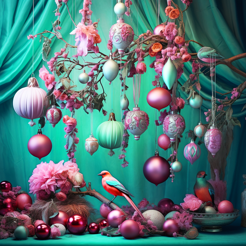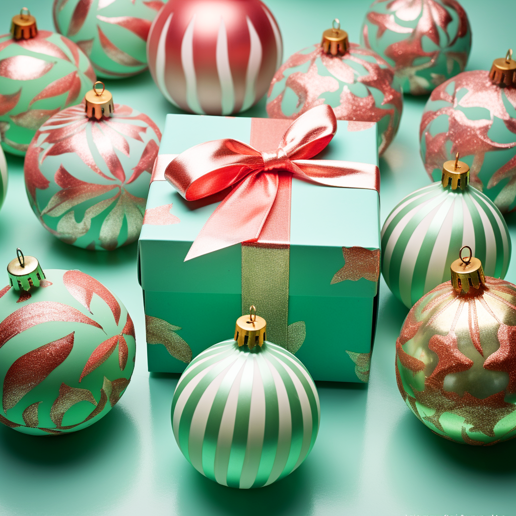 クリスマスオーナメントやプレゼントボックスなどのモチーフを画像生成AIにて制作。
