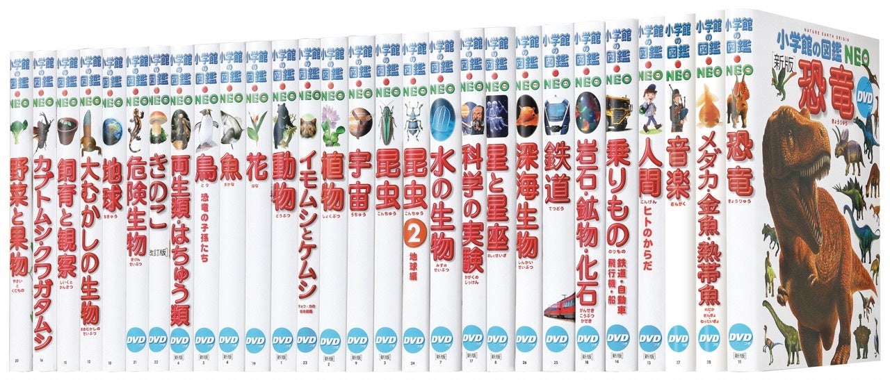 学習図鑑売上No.1、シリーズ累計発行部数1,500万部を突破したベストセラー図鑑。恐竜、動物、植物など計28タイトルに及ぶ学習図鑑をはじめ、ハンディサイズが好評の「NEO POCKET」シリーズや児童に人気の紙工作本「小学館の図鑑NEOのクラフトぶっく」シリーズ、めくって遊べる図鑑の『小学館の図鑑NEO まどあけずかん』シリーズなど刊行形態は多岐に渡る。その質の高い内容から、さまざまな展示への協力はもちろんのこと、マクドナルドのハッピーセット®のアイテムとして起用されるほか、タカラトミーの知育玩具や人気フィギュアシリーズ『アニア』への生物データ提供など、図鑑という形にとらわれることなく、様々なジャンルとのコラボレーションも実施している。