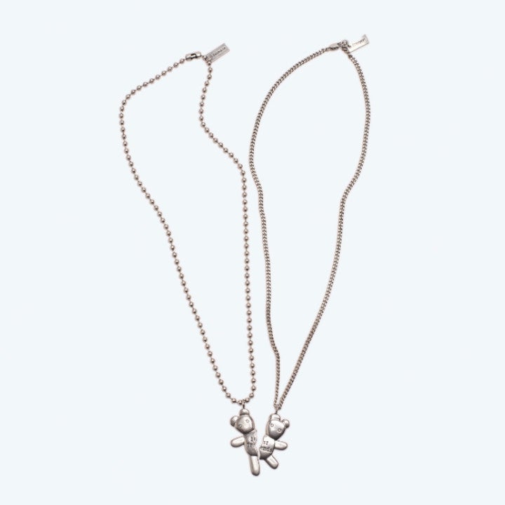 異なるシェイプのチェーンに、アイコンである"ダブルヘッドベア"があしらわれたネックレスセット。2つで1つのデザインが完成するため、重ねづけはもちろん、友人同士やカップルでのシェアにも最適。ギフトにもおすすめのアイテムです。