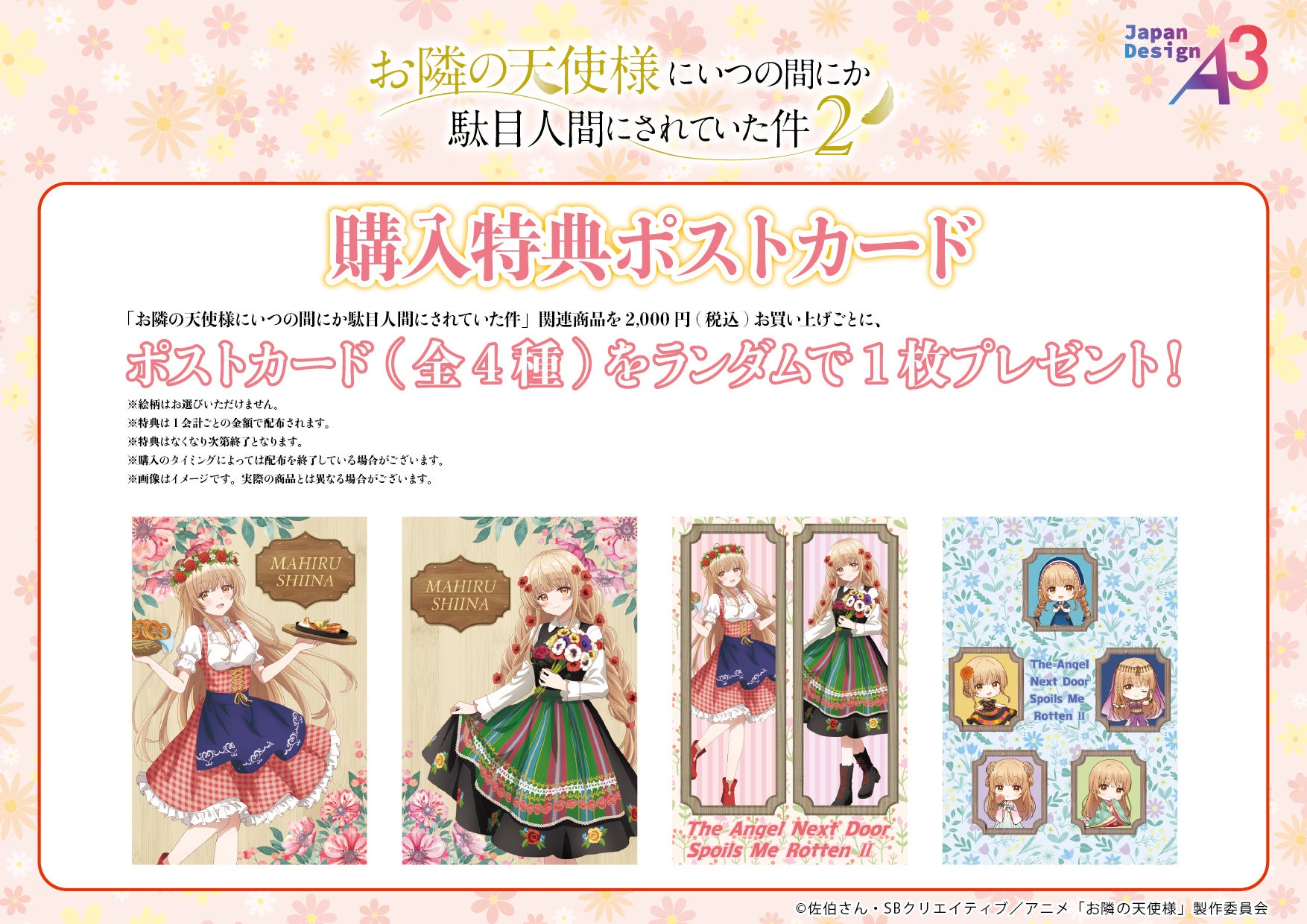 「お隣の天使様にいつの間にか駄目人間にされていた件」関連商品を2,000円(税込)お買い上げごとに、「ポストカード(全4種)」をランダムで1枚プレゼント。