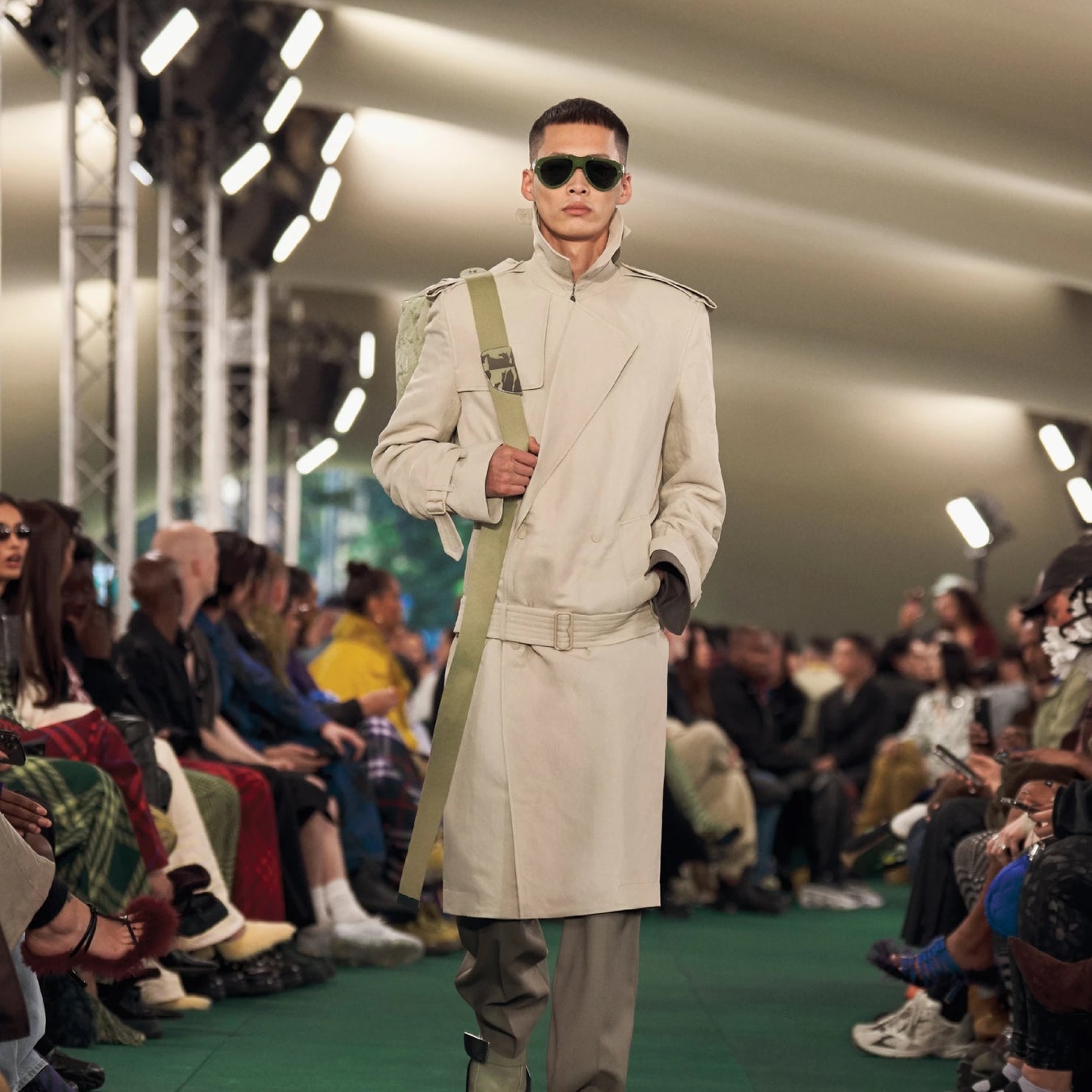 <バーバリー> トレンチコート 528,000円、パンツ 187,000円
