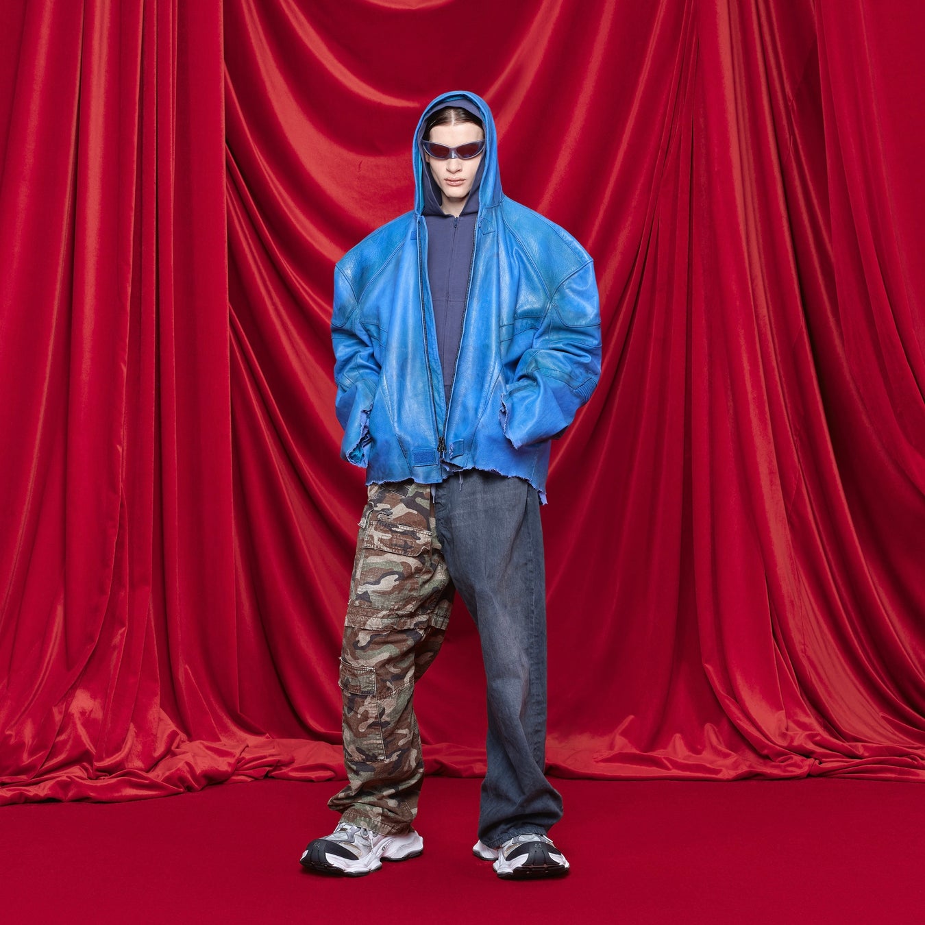 <バレンシアガ> フーデッド バイカー ジャケット 1,469,600円、ハイブリッド バギー パンツ 389,400円