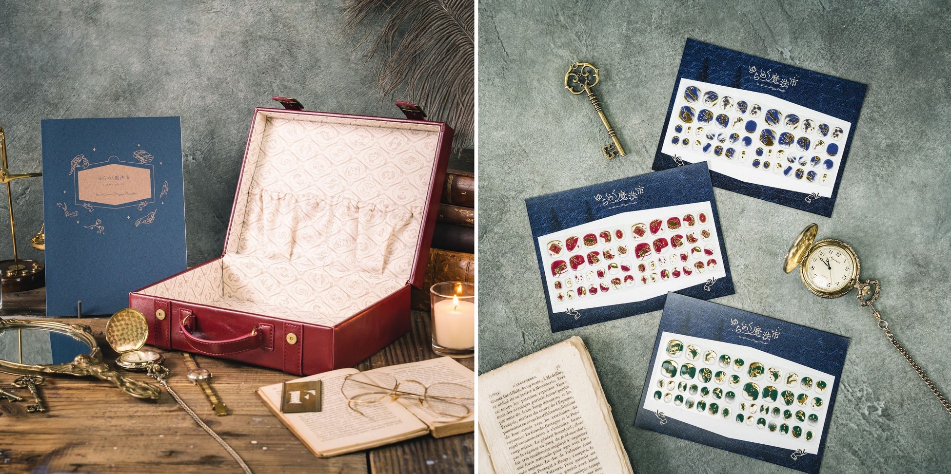 フェリシモ「魔法部®」とTRPGシナリオ『ゆらめく魔法市』のコラボアイテム、ゲームブック版『ゆらめく魔法市』&物語をイメージした「トランクケース&ゲームブック」と「ネイルシール」が発売開始。