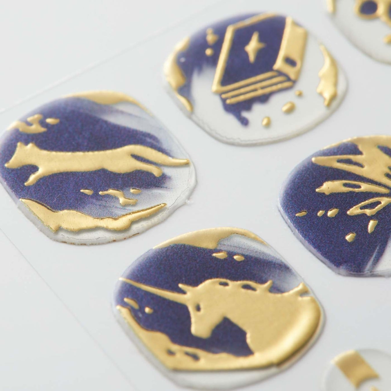 ゴールド箔をぜいたくに使用した華やかな印象のネイルシール。