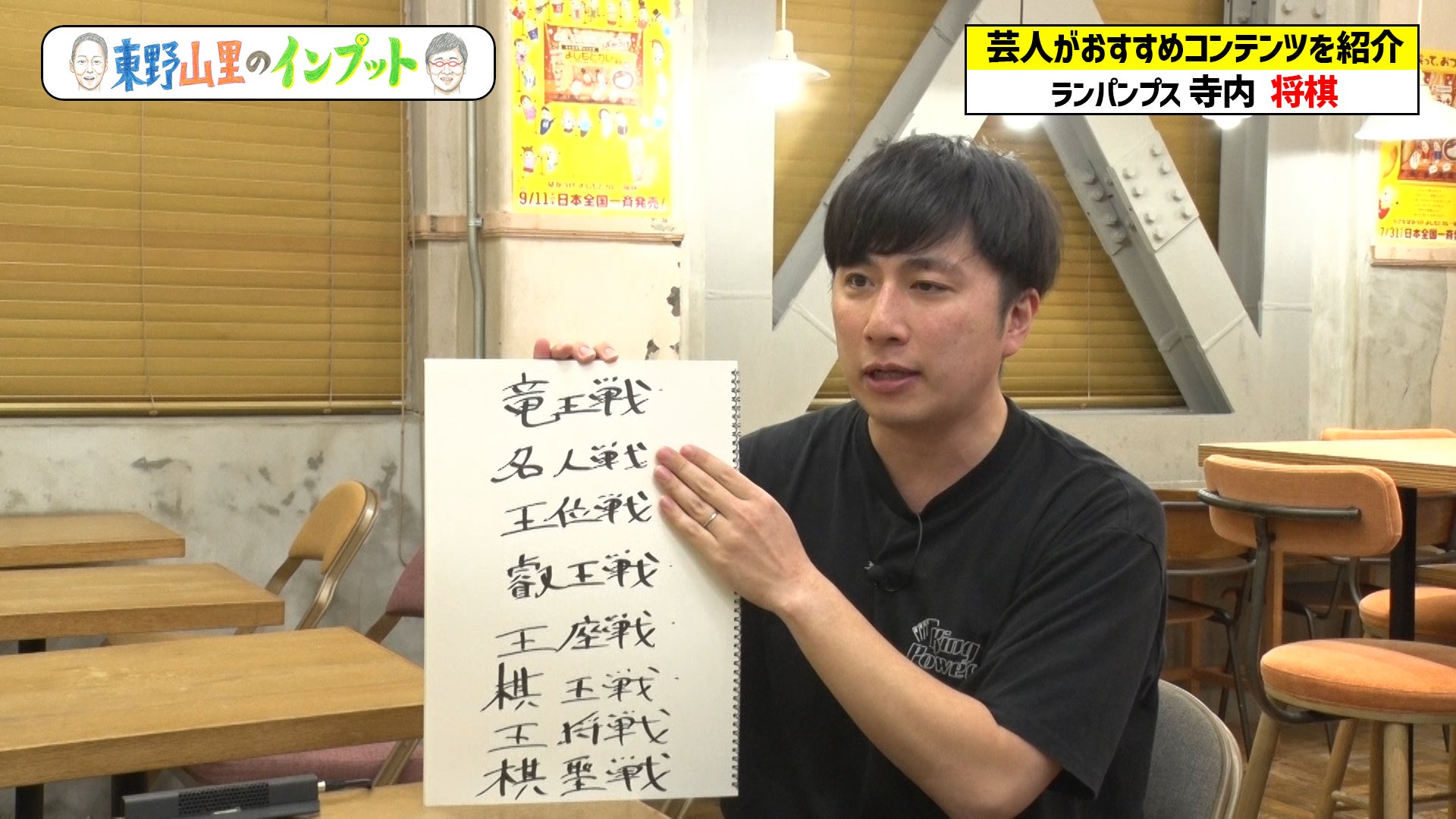 今回のプレゼンターは寺内ゆうき(ランパンプス)で、テーマは藤井聡太竜王の活躍でも話題の「将棋」です。芸人になって将棋をはじめたという寺内。キャリアは浅いものの、業界に精通しており「よしもと将棋芸人 関東将棋ブ」で部長をしています。