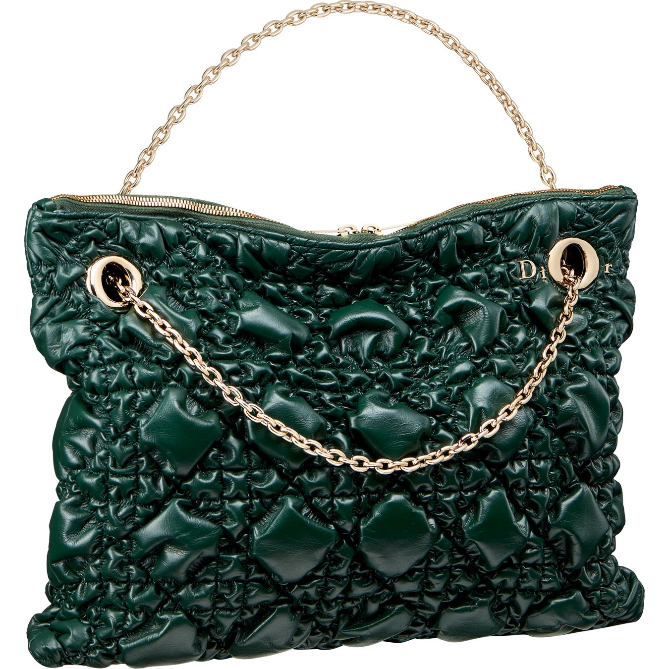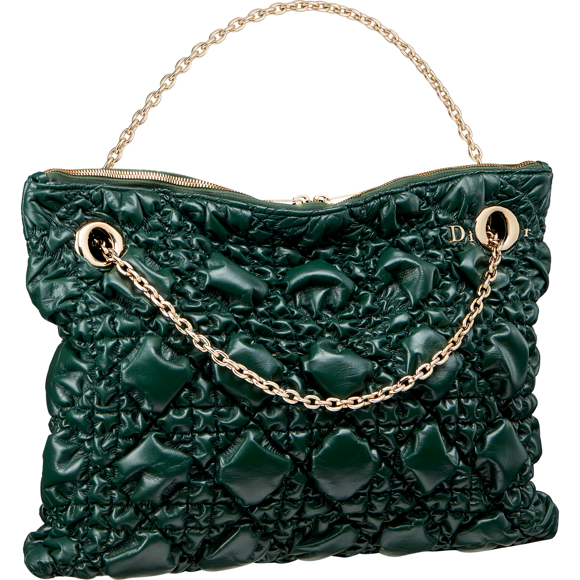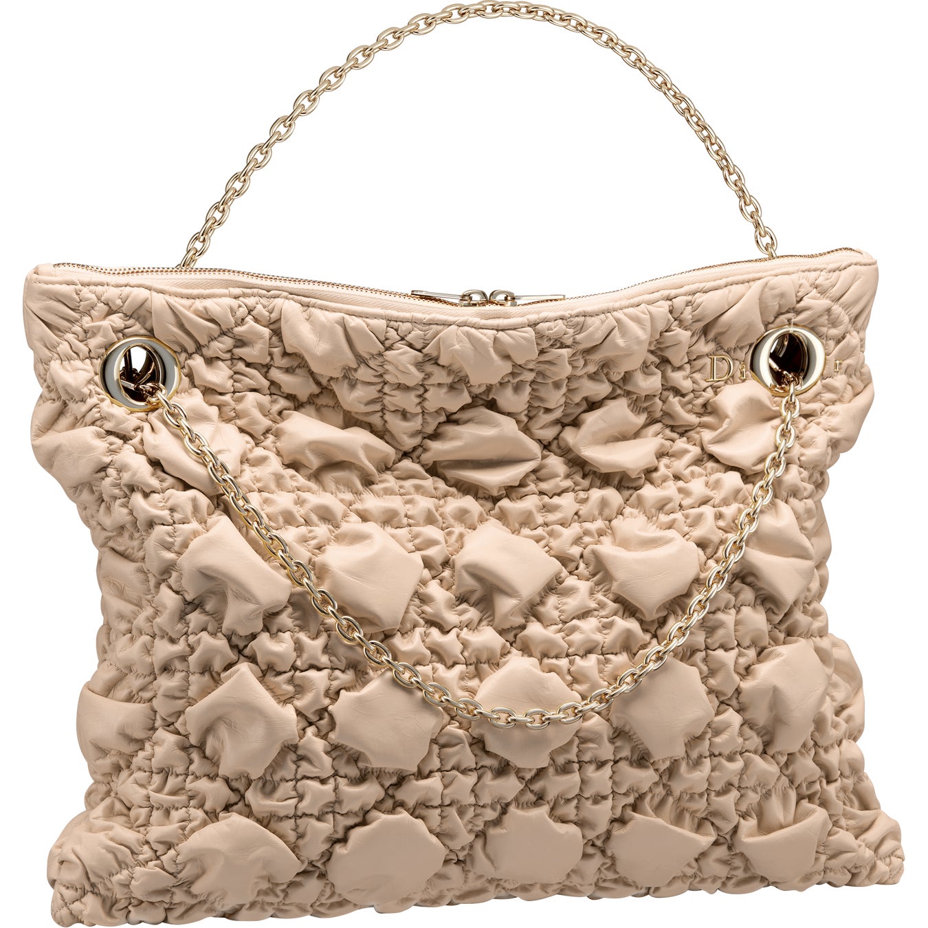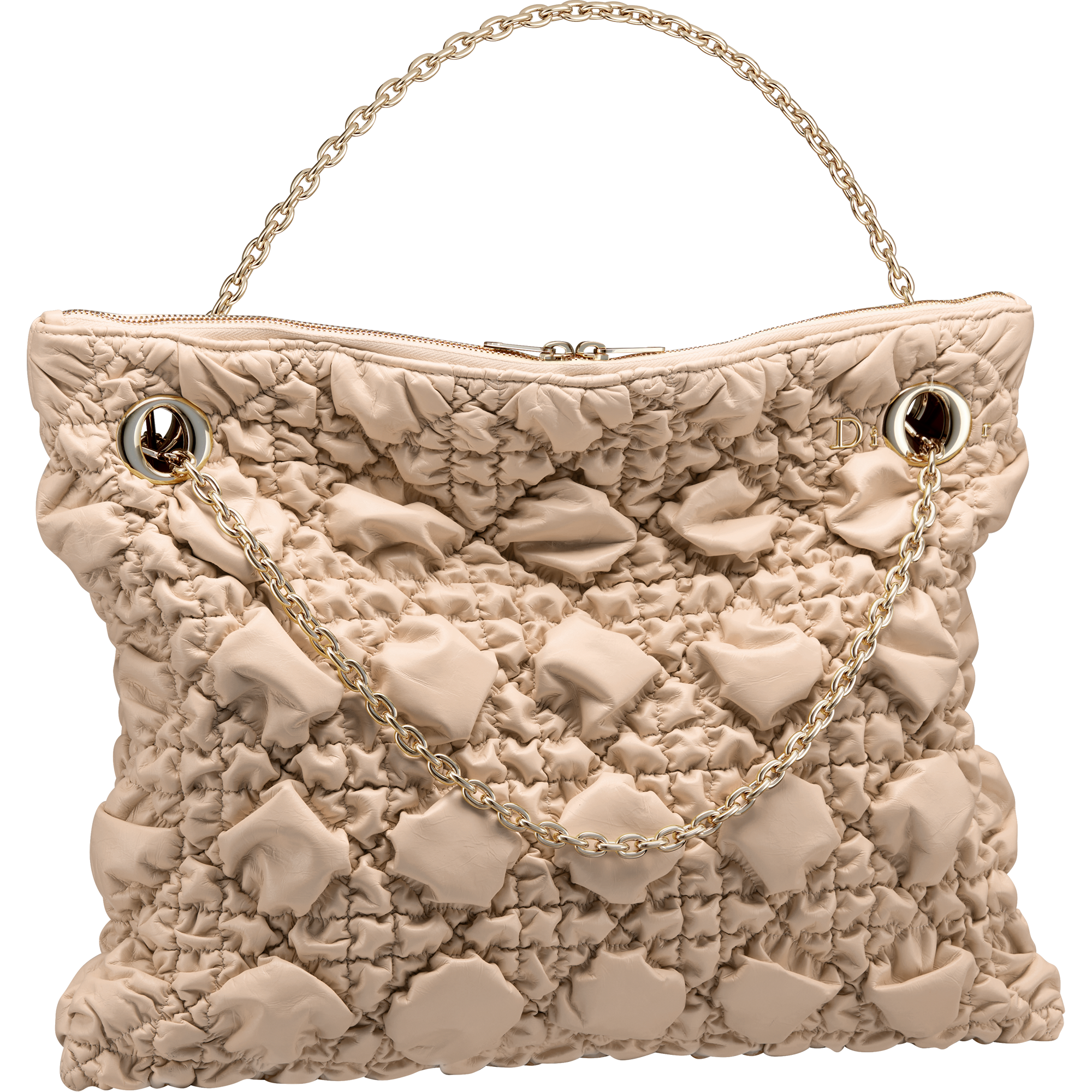 実用性と洗練を融合した「ディオール クランチー」は、手持ちや肩掛け、クロスボディといった様々な持ち方に対応する2つのゴールドハンドルを備え、あらゆる動きにフィットします。また、繊細な“Dior”シグネチャーがチェーンストラップのアイレットと戯れるデザインも特徴です。