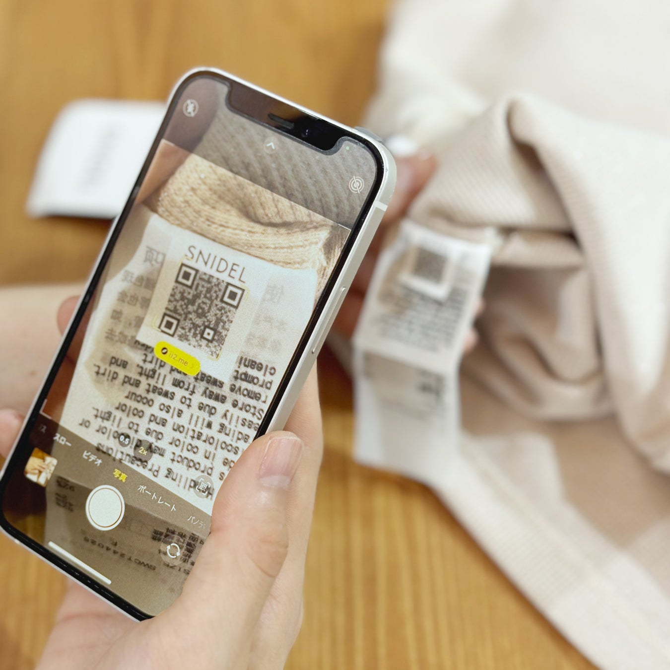 このような背景から、この度「サーティアイの導入」が決定しました。サーティアイの2次元コードは、洗濯表示タグと同様に製品本体へ縫い付けられた状態で出荷され、お客様自身が正規品か模倣品かを瞬時に判別することが可能となります。