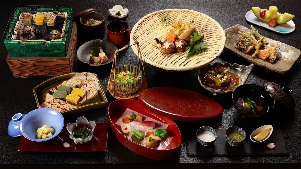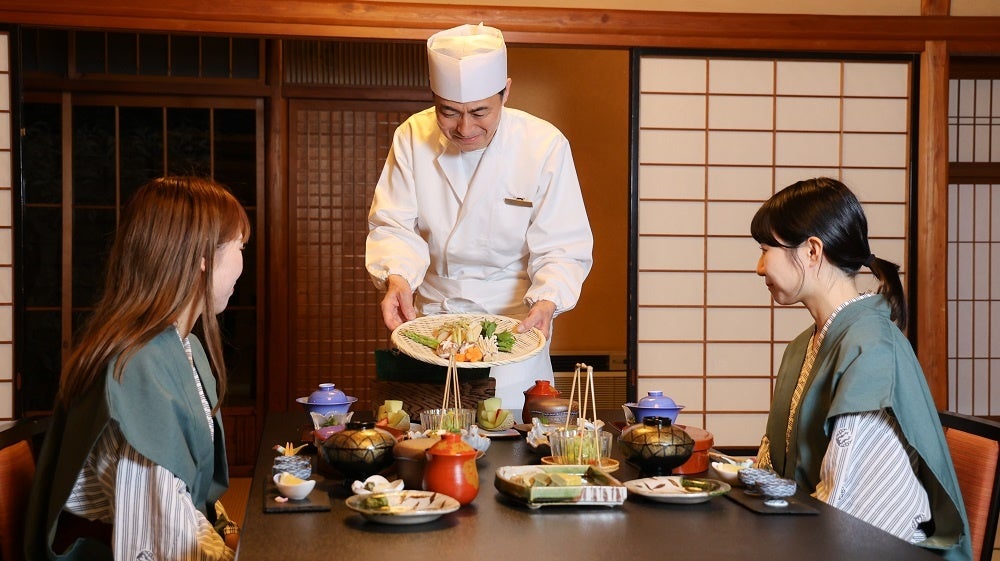 有形文化財に登録されている本館のお部屋にて春の精進料理をご提供いたします。揚げたての春の山菜天ぷらをはじめ、旬の食材を使用した精進料理をお楽しみいただけます。和の美しさとともに、心も身体も満たされるひとときをお過ごしください。