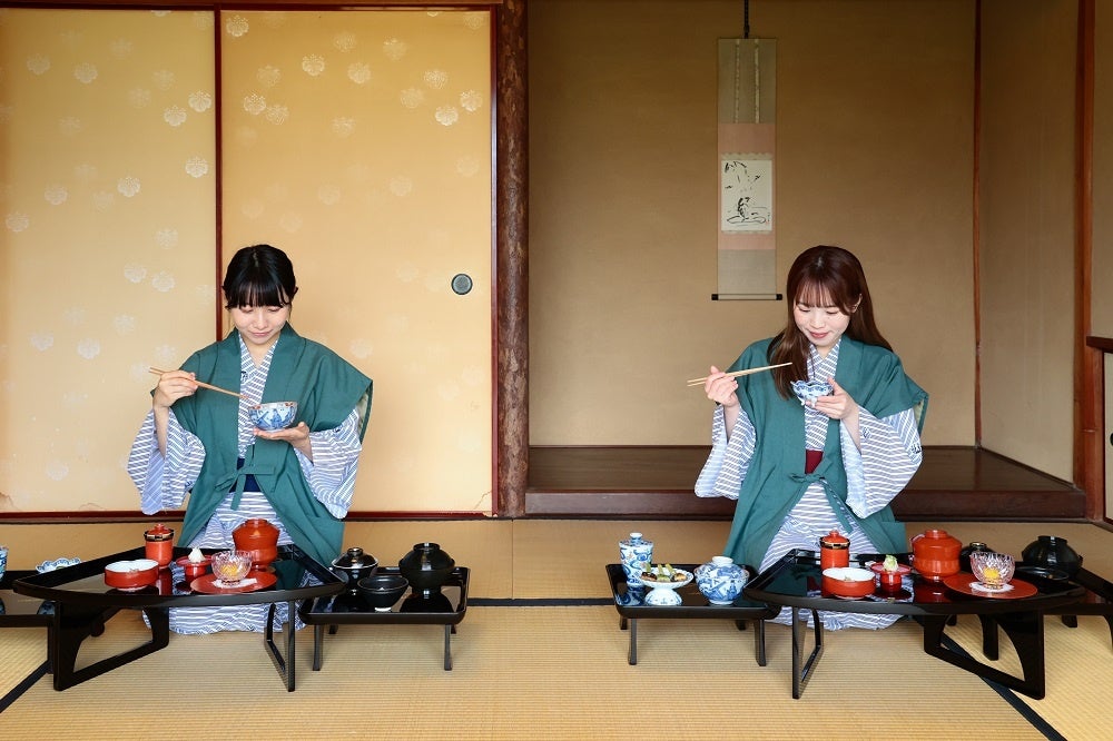・日本庭園を眺めながら抹茶体験や有形文化財「小督(こごう)」のお部屋で絶景を眺めながら精進御本膳。
