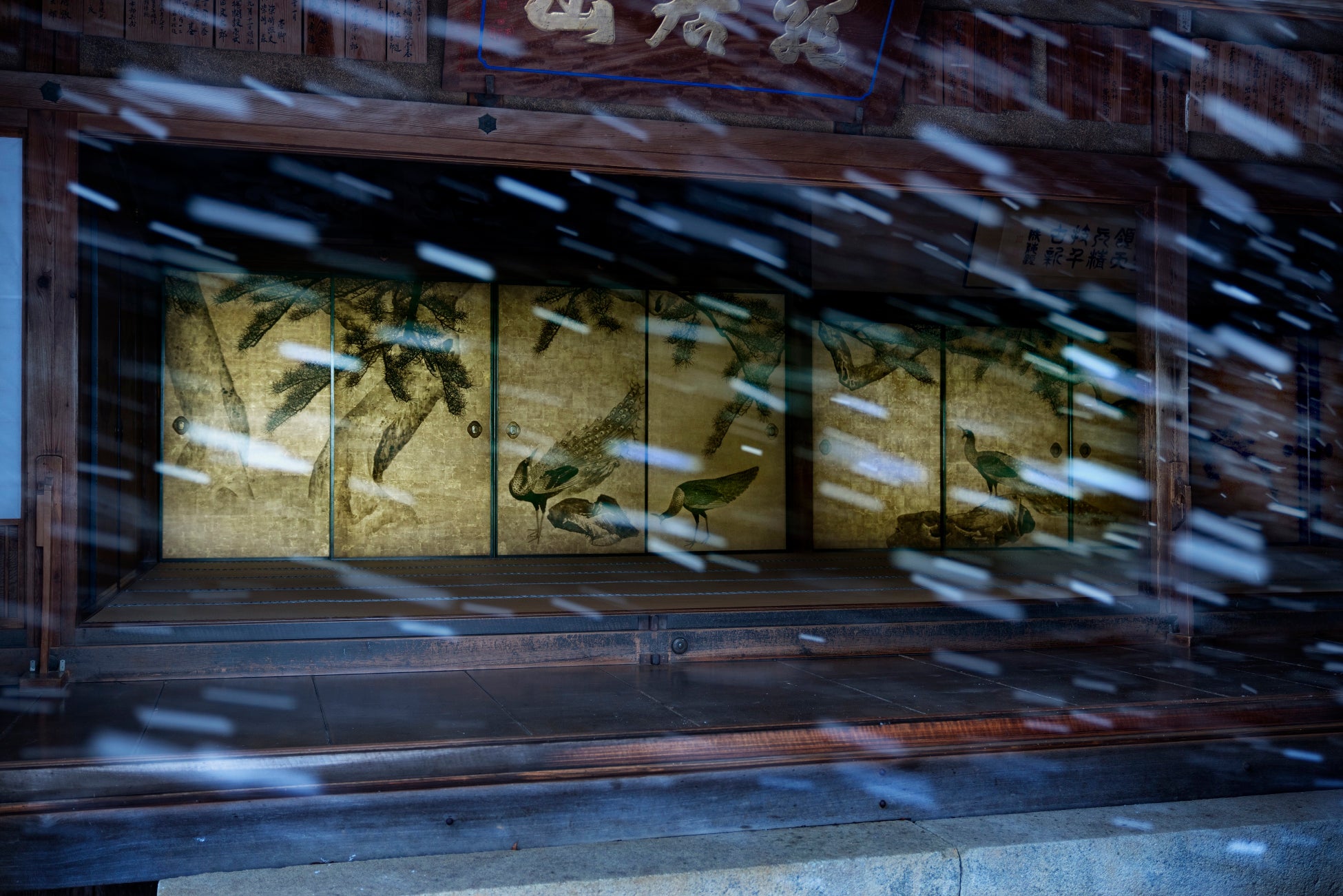 本展は、二世紀以上前に応挙がディレクションした大乗寺客殿の空間を十文字美信が撮り下ろし、時空を超えたイメージの巨大なインスタレーションを構成します。神聖な空間の沈黙は破られ、観る者の心が揺さぶられることでしょう。