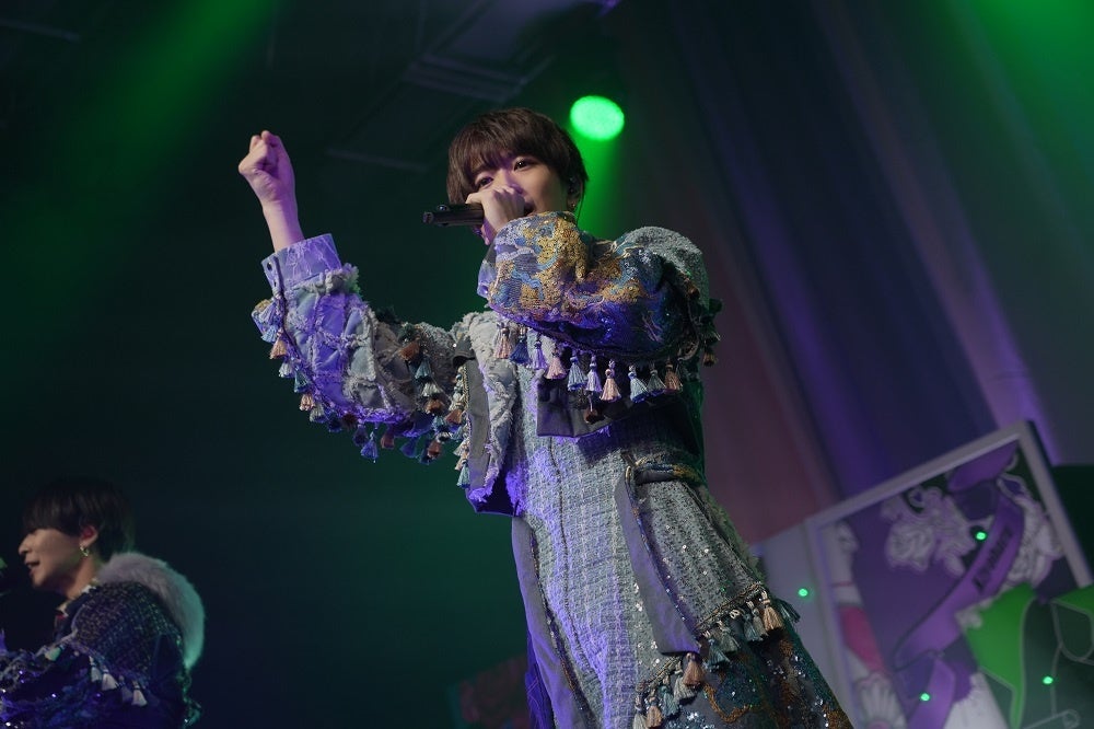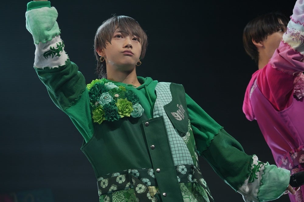 この日は大阪公演ということで、メンバーがそれぞれ関西弁でMCに挑戦するほほ笑ましい一幕も。四季涼雅と仮屋瀬さつきの仲むつまじいトークにも笑顔が絶えない。かと思えば、衣装チェンジしたダンスブレイクでは、ド派手の照明とシンクロしたパフォーマンスでも躍動感たっぷりに魅せていく。