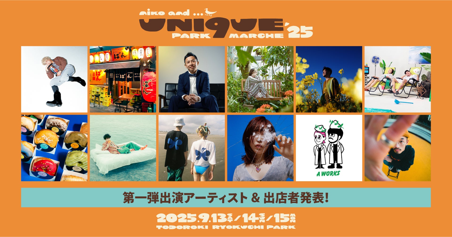 株式会社アダストリア(本部:東京都渋谷区渋谷2-21-1、代表取締役社長:木村 治)が展開するスタイルエディトリアルブランド「niko and ...(ニコアンド)」は、ブランドが掲げる“uni9ue senses(ユニークセンス)”(衣・食・住・遊・知・健・旅・音・LOCAL)を通して、これまで体験したことのない驚きや発見に出会える都市型カルチャーイベント「niko and ... UNI9UE PARK MARCHE’25(ニコアンド ユニークパークマルシェ’25)」を2025年9月13日(土)・9月14日(日)・9月15日(月・祝)の3日間、神奈川県川崎市の等々力緑地の催し物広場にて開催いたします。