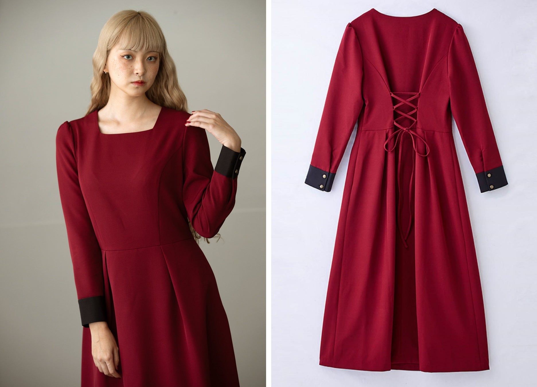 魔法少女のストーリーに、コスチュームは欠かせないもの。普通の女の子から魔法少女に変身するとき、コスチュームチェンジによってパワーアップする姿へのあこがれから、2-wayで楽しめるワンピースが誕生。ふだんはシンプルに、ときには強さをくれるコスチュームのように。魔法学校をイメージした、2通りのクラシカルな装いが楽しめます。