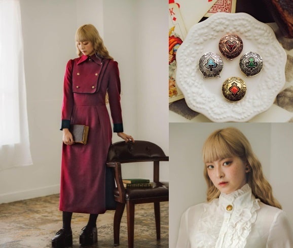 魔法部®から変身をテーマにした新作「魔法学校のクラシカルチェンジワンピース」と「変身ブローチトランプ柄ボタンカバー」が誕生