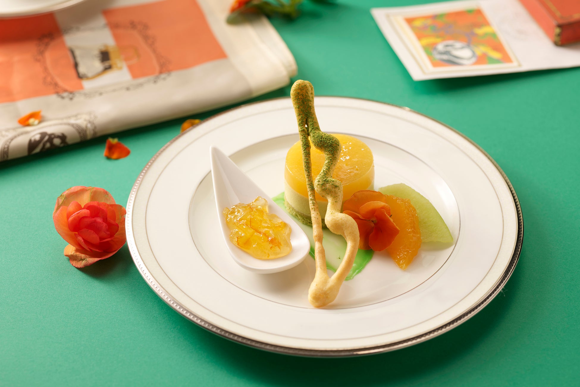 ピスタチオのムースとオレンジゼリー/フレッシュオレンジ/フレッシュメロン/マーマレード
