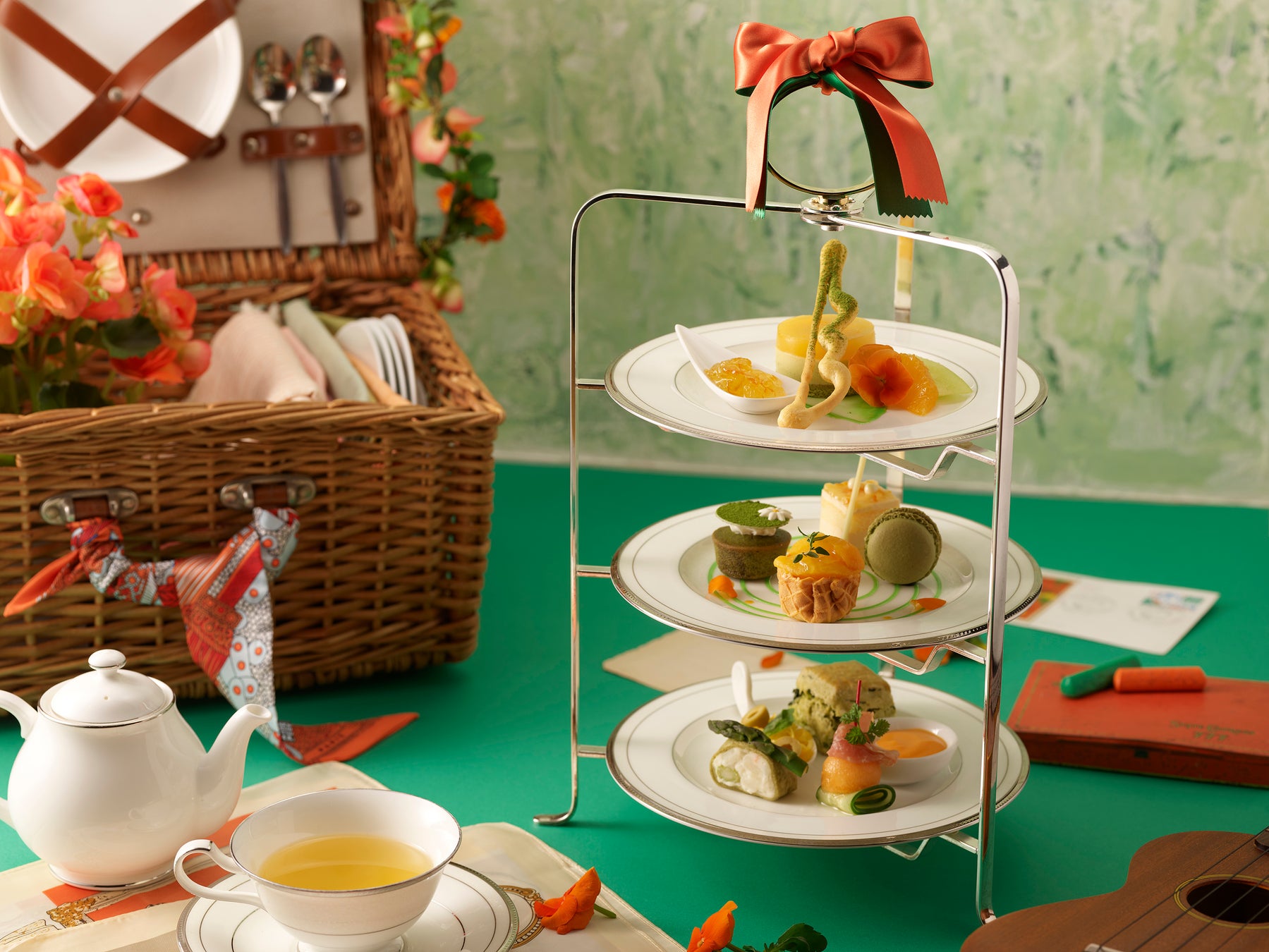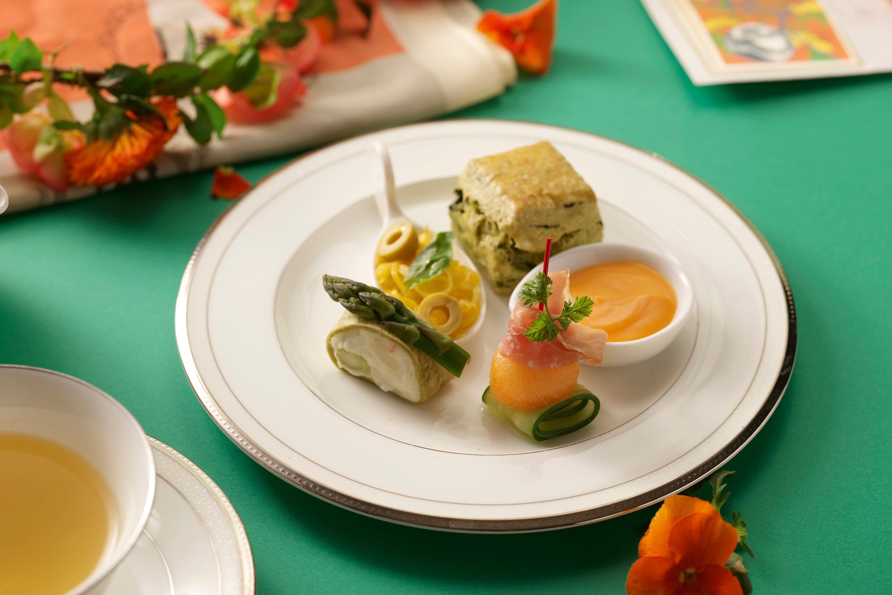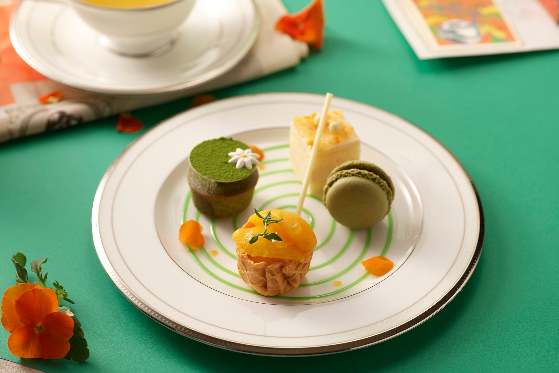 「The Lobby Cafe」では、この春から2色をコンセプトにした「色と色が紡ぐアフタヌーンティー」を展開しております。第2弾となる今回はフレッシュな新緑の“グリーン”と、柔らかな陽光の“オレンジ”をテーマに、初夏を彩るスイーツやセイボリーをご用意しました。