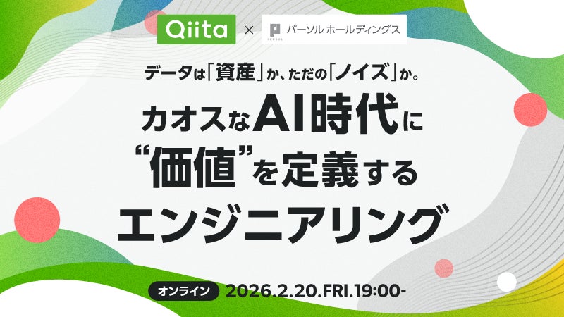 創造性と技術力で多様なITサービスを展開する株式会社エイチームホールディングスのグループ会社で、エンジニアに関する知識を記録・共有するためのサービス「Qiita(キータ)」を展開しているQiita株式会社(本社:名古屋市中村区、代表取締役社長:柴田健介)は、日本最大級のエンジニアコミュニティ「Qiita(キータ)」において、「データは『資産』か、ただの『ノイズ』か。カオスなAI時代に"価値"を定義するエンジニアリング」を2026年2月20日(金)に開催いたします。