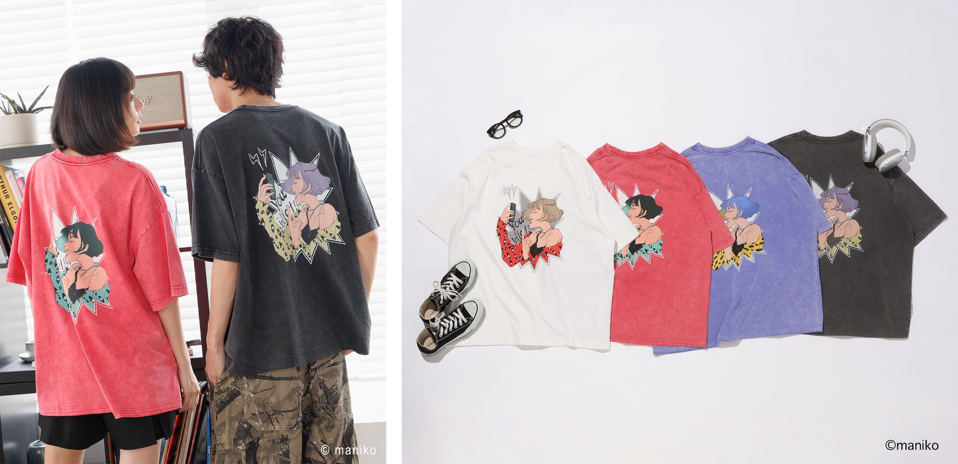 この度、PBLIMは「女の子の感情+爆発=宇宙」をテーマとするイラストレーター「maniko」さんと2度目のタッグを組み、特に台湾で人気が高い、ポップで夏が楽しくなるデザインのコラボレーションTシャツを2種類発売します。