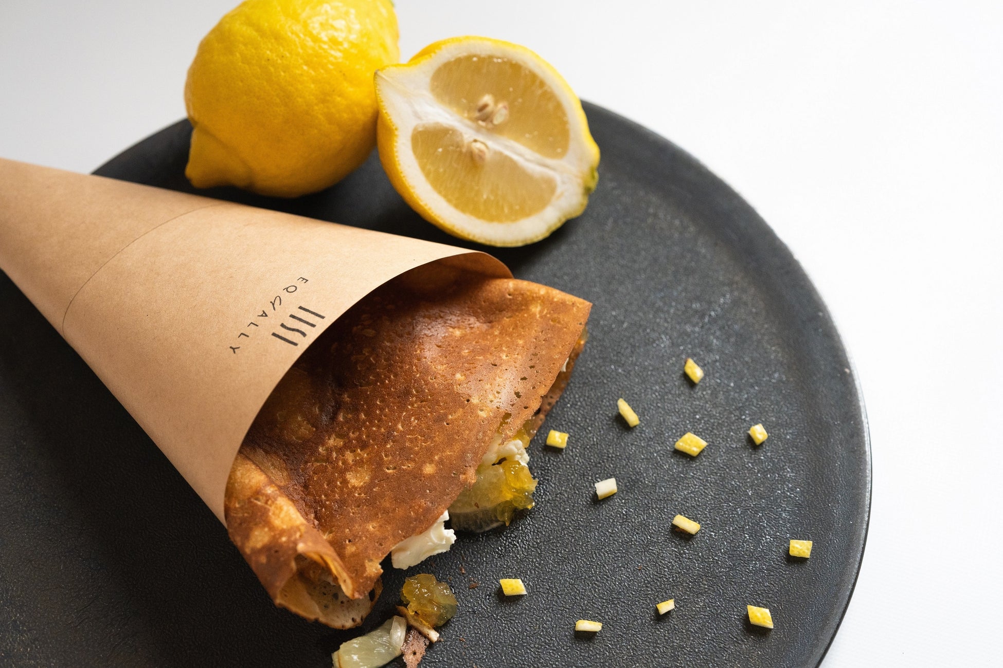 オリジナルのクレープ生地にフランス製発酵バターを塗り、国産レモンから作ったレモンコンフィチュールと「晩柑の王様」といわれる鹿児島県産のサワーポメロにクリームチーズ、ブラウンシュガーを散りばめて焼き上げました。チーズとバターのまろやかな味と香り、柑橘のさわやかな酸味、シュガーの自然な甘みとしゃりっとした食感のマリアージュをご堪能ください。