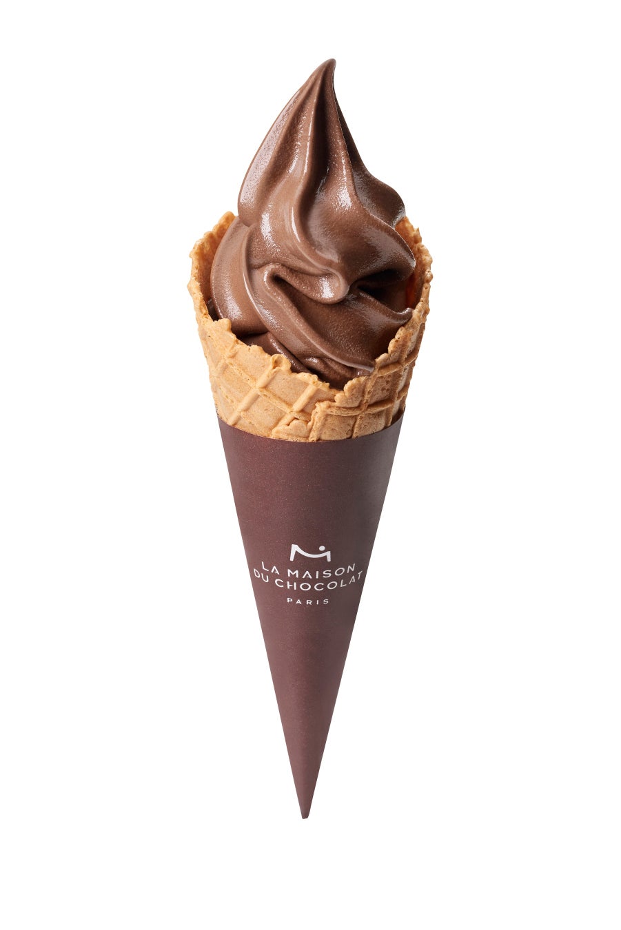 1977年にパリで創業したショコラ専門店<ラ・メゾン・デュ・ショコラ>らしい、濃厚なカカオの風味をお楽しみいただける、チョコレートソフトクリーム「コルネ メゾン」。リッチなカカオのコクがチョコレートの味わいに深みを与え、「大人なチョコレートソフトクリーム」という表現がピッタリです。チョコレートとは異なる味わいを、じっくりと堪能してください。