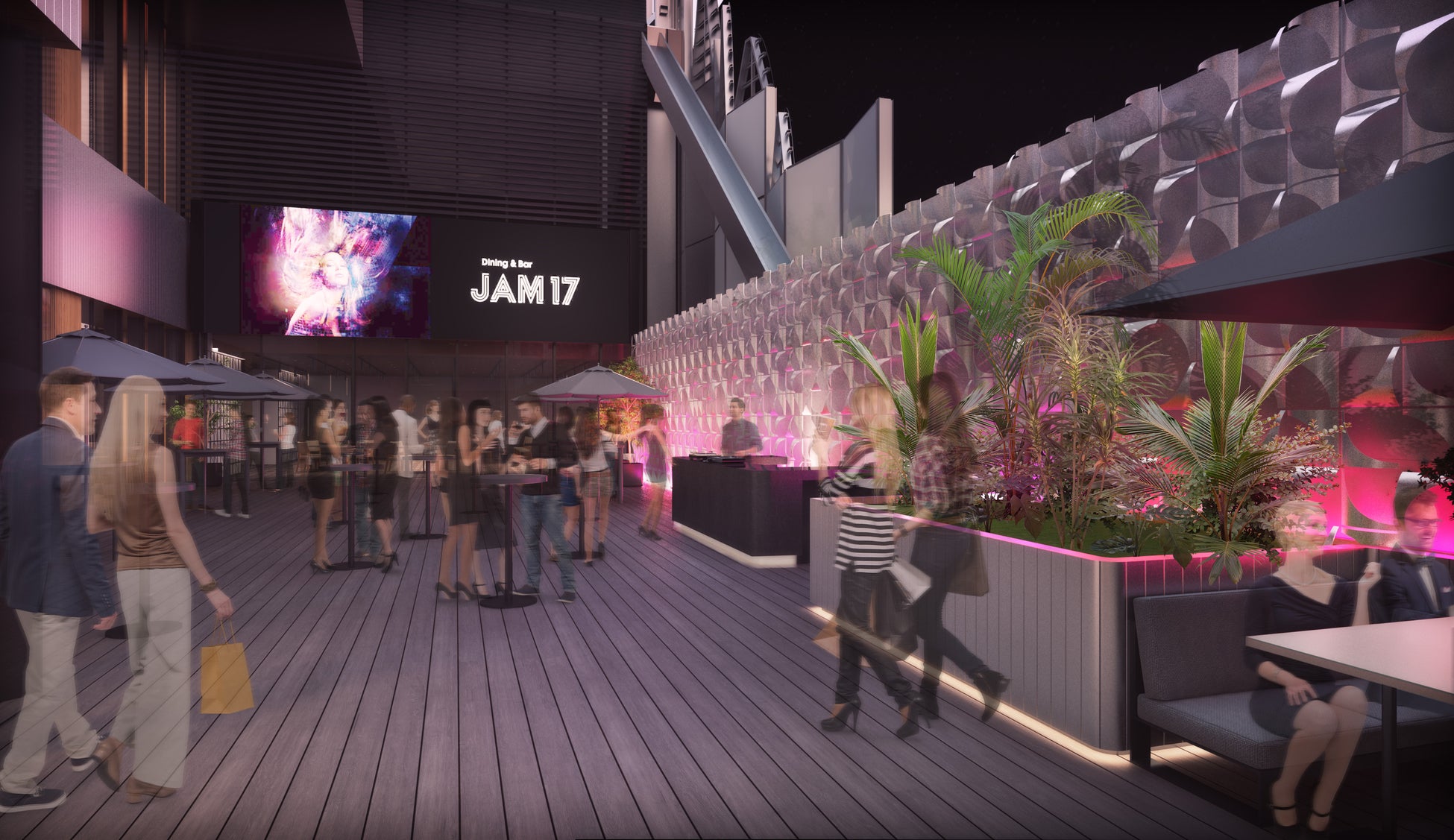HOTEL GROOVE SHINJUKU, A PARKROYAL Hotelは東急株式会社、株式会社東急レクリエーションが新宿・歌舞伎町において開発を進めている国内最大級※¹のホテル×エンタメ施設からなる超高層複合施設「東急歌舞伎町タワー」に誕生する、歌舞伎町のまちを遊びつくすための拠点となるライフスタイルホテルです。ホテルの開業日2023年5月19日(金)に先行して、17階にホテル直営のダイニング&バー空間「JAM17 DINING & BAR」を2023年4月14日(金)にオープンいたします。大型ビジョンを備えたルーフトップテラスやパーティールーム、ライブ感あふれるダイニングとバーで構成されたフロアは、ホテルとまちを繋ぐ新しい社交場として新たなダイニングシーンと多彩なイベントを展開していきます。つきましては、オープンに先がけて店舗のお披露目を兼ねたオープニングレセプションを開催いたします。メディアの皆さまに店内の雰囲気を一足早くお楽しみいただける機会となりますので、お申し込みの上ぜひご来場ください。