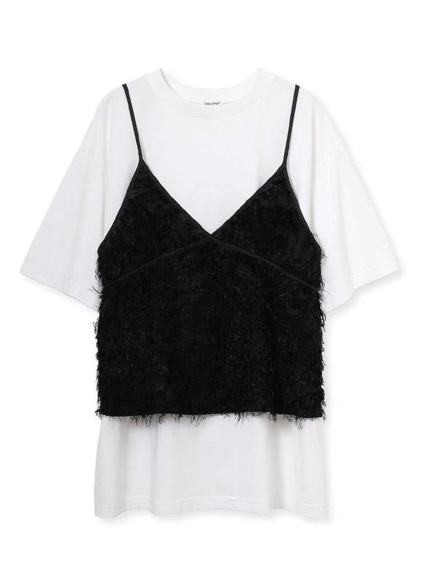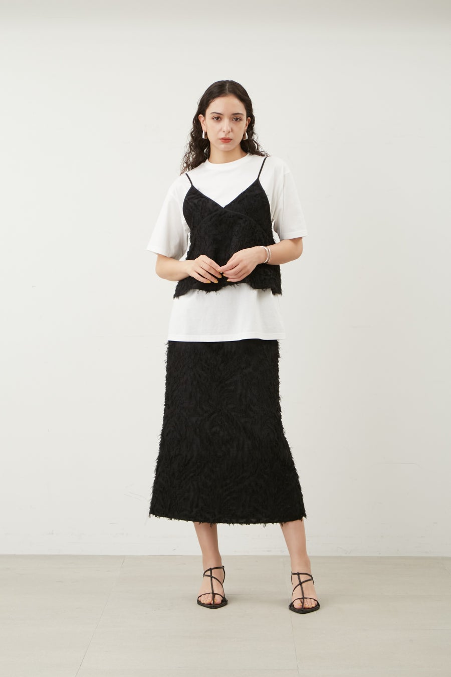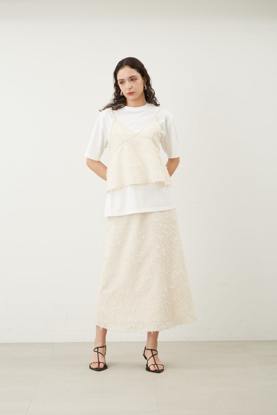 フリンジ素材のキャミソールとTシャツがセットになったトップスと、キャミソールの同素材スカートを限定発売。