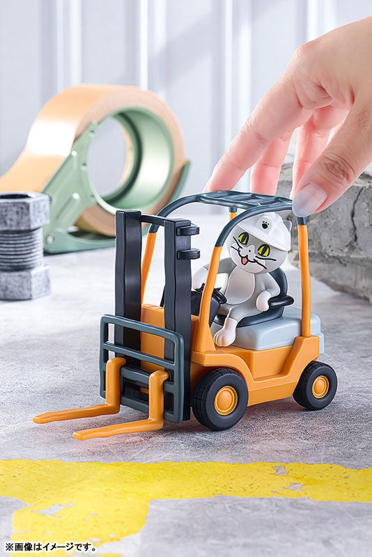 「POP UP PARADE」は、思わず手にとってしまうお手頃価格、全高17~18cmの飾りやすいサイズ、スピーディにお届けなど、フィギュアファンにやさしいカタチを追求したフィギュアシリーズです。くまみね先生の描き下ろしイラストを元にしたフォークリフトに乗った仕事猫が、後ろに引いて手を離すと走り出します。ヨシ!