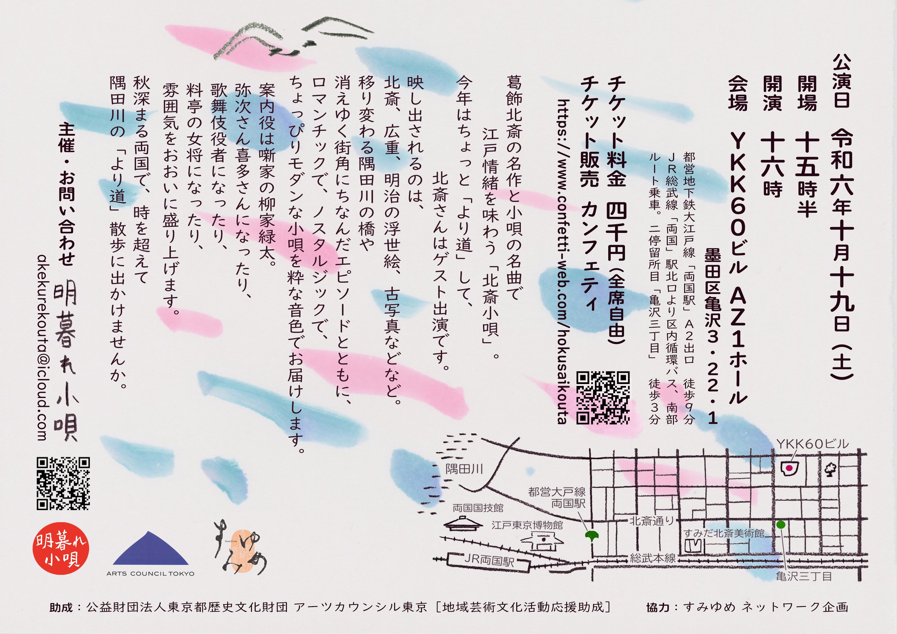 葛飾北斎や隅田川にまつわる芸術活動を支援する「隅田川 森羅万象 墨に夢」(墨田区文化振興財団運営)のネットワーク企画に参加。
