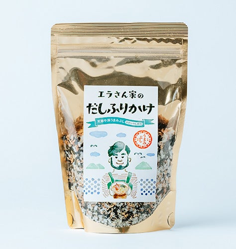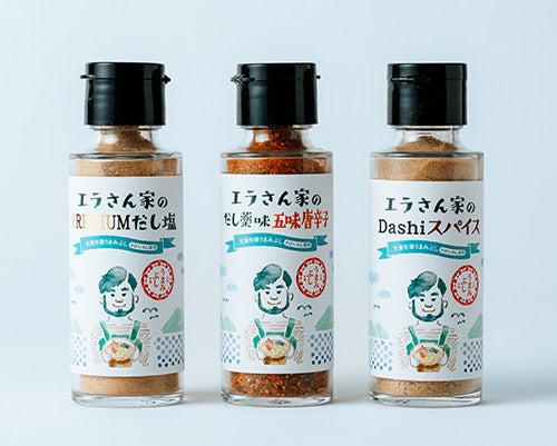 日本一の雑節(ざつぶし)生産量を誇る、天草・牛深。サバやイワシ、アジといったさまざまな魚介を海水で炊き上げ、広葉樹で燻して保存性を高める牛深の雑節は、天草の里山里海の循環を物語る食材でもあります。なかでも、つかい手の立場に立ち、徹底した温度管理や品質管理を貫く「江良水産」の雑節は、雑味がなく、ひとつひとつの素材の個性を感じる芳醇な香りと旨味がポイント。和食にうまみと深みをもたらす、だし素材です。万能ブレンドの「あわせぶし」やウルメイワシの「みそしるぶし」、「さばぶし」という3種の削り節に加え、化学調味料無添加の「うまみつゆ」、「だしふりかけ」といった「エラさんち」の人気シリーズがずらりと並びます。さらに、この秋リリースされたばかりの瓶タイプ「PREMIUMUだし塩」「だし薬味 五味唐辛子」「Dashiスパイス」がどこよりも早く、初登場します。