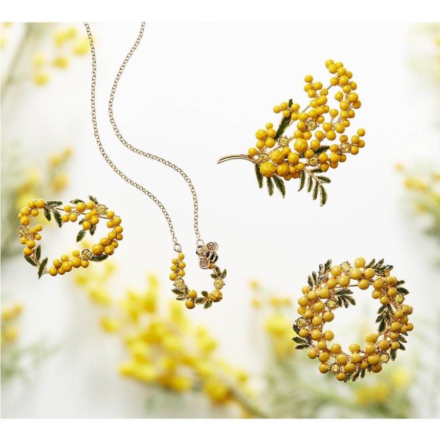 イエローカラーが春の訪れを感じさせてくれる、「ミモザ」モチーフのネックレス&ブローチです。