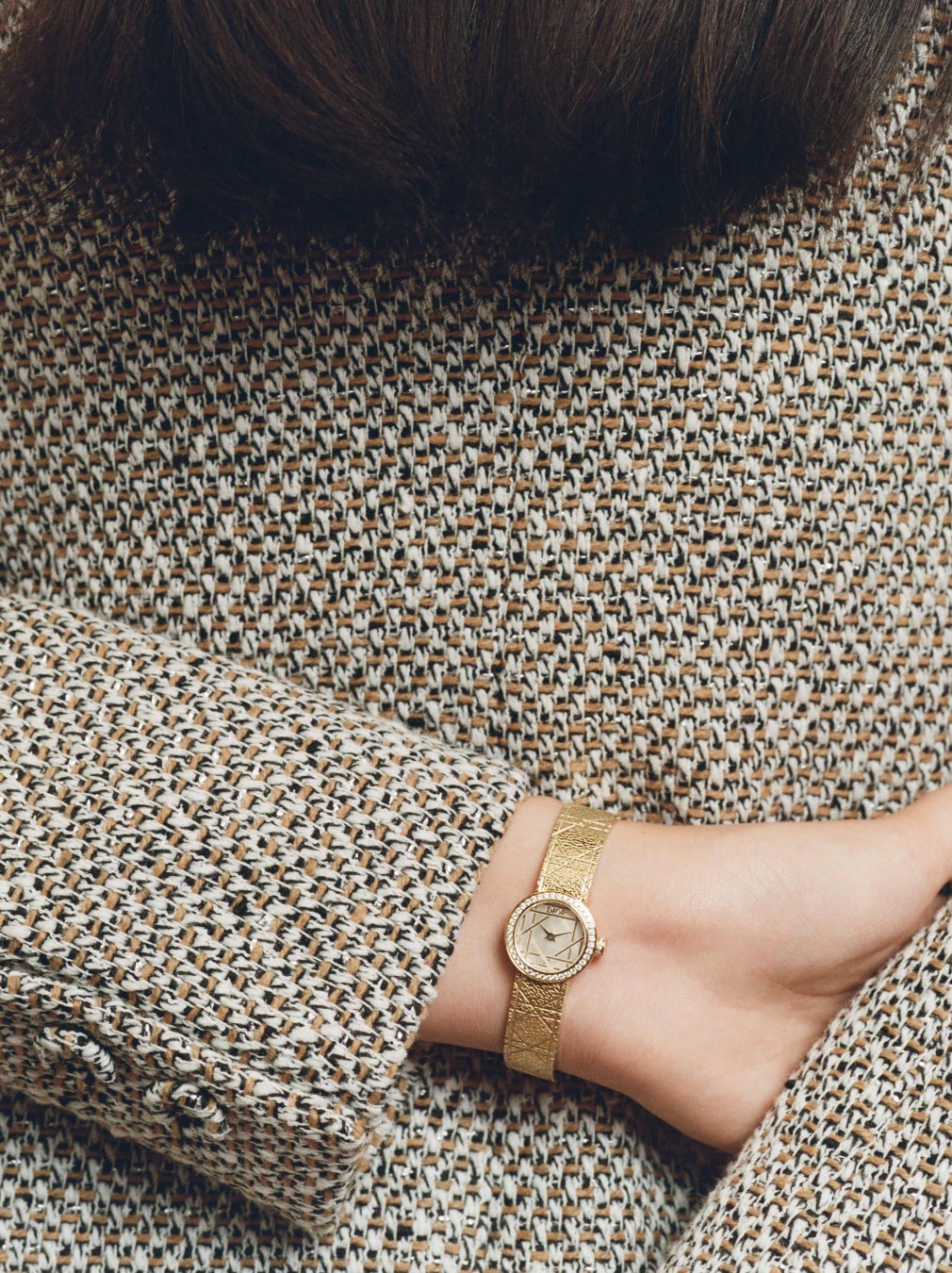 2026年、アイコン「ラ デ ドゥ ディオール」がディオールを象徴するタイムレスなデザインコードである「カナージュ」を纏った「ラ デ マイ ディオール」より、見る者を魅了するグラフィカルなモチーフと、ゴールドとスティールにダイヤモンドをあしらった比類なきクリエイションの中で、巧緻性とエレガンスが一体化した、圧倒的にモダンな新モデルが登場します。