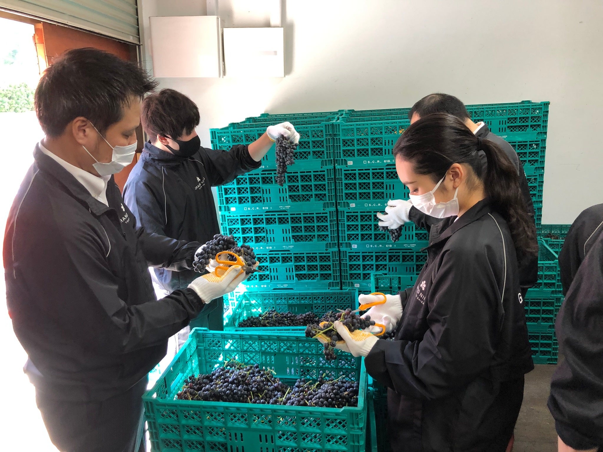 長野県へぶどうを収穫に行く際には、日々お客様と接している「鉄板焼 銀杏」の調理担当も同行し共に畑仕事に励みました。また、ワイナリーでの作業では若手スタッフを中心に取り組むなど、ホテル一丸となりやっと完成させることができました。より多くのお客様にお届けできることを楽しみにしております。ぜひご賞味ください。」