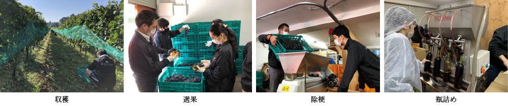 グランドニッコー東京 台場では、都市型ワイナリーとして注目されている「深川ワイナリー」の協力のもと、ぶどうの収穫から除梗、圧搾、瓶詰め、コルク打栓およびラベルデザインまですべてのワイン造りのプロセスを、当ホテルソムリエをはじめホテル内の有志スタッフにより行っています。当プロジェクトは2017年から行われており本年で4回目の商品化を果たすことができました。