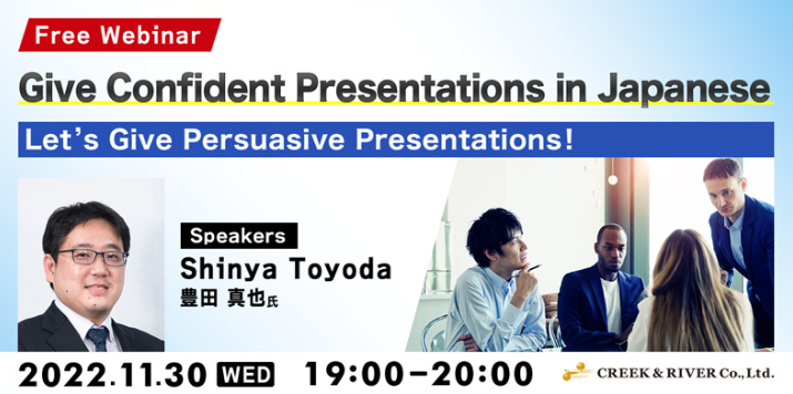 On November 30th(WED), Creek & River Co., Ltd.(C&R) will hold a seminar“Let's Give Persuasive Presentations! For those who want to present confidently in Japanese.”