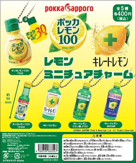 「ポッカレモン100」「キレートレモン」ロングセラー商品が初のカプセルトイに!5種類がミニチュアチャームとなって2024年10月下旬より登場