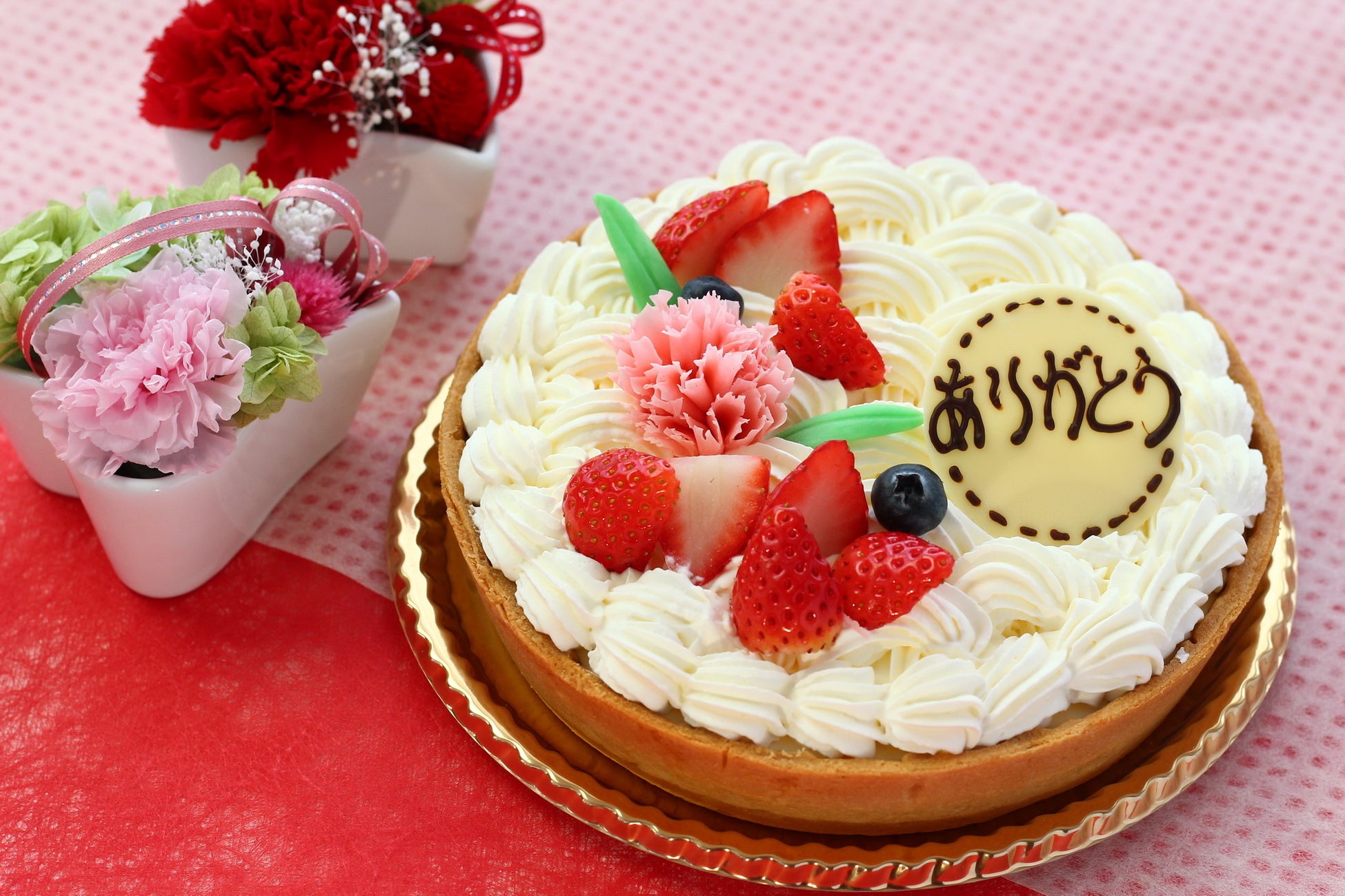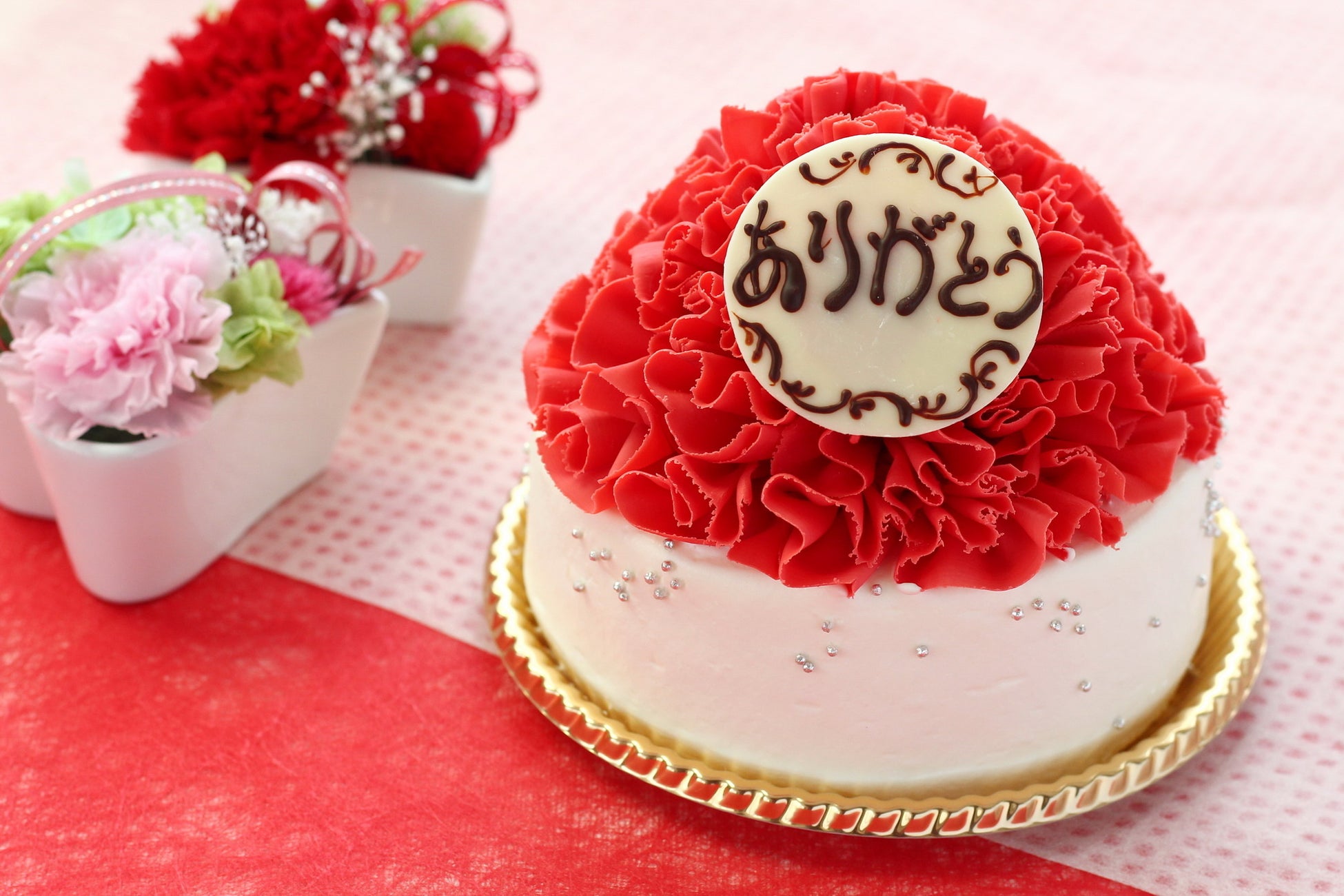 ホテルメイドのスポンジに苺と北海道産生クリームを2層にサンドし、チョコレートを丁寧に重ねて作った大輪のカーネーションが印象的で華やかなケーキです。