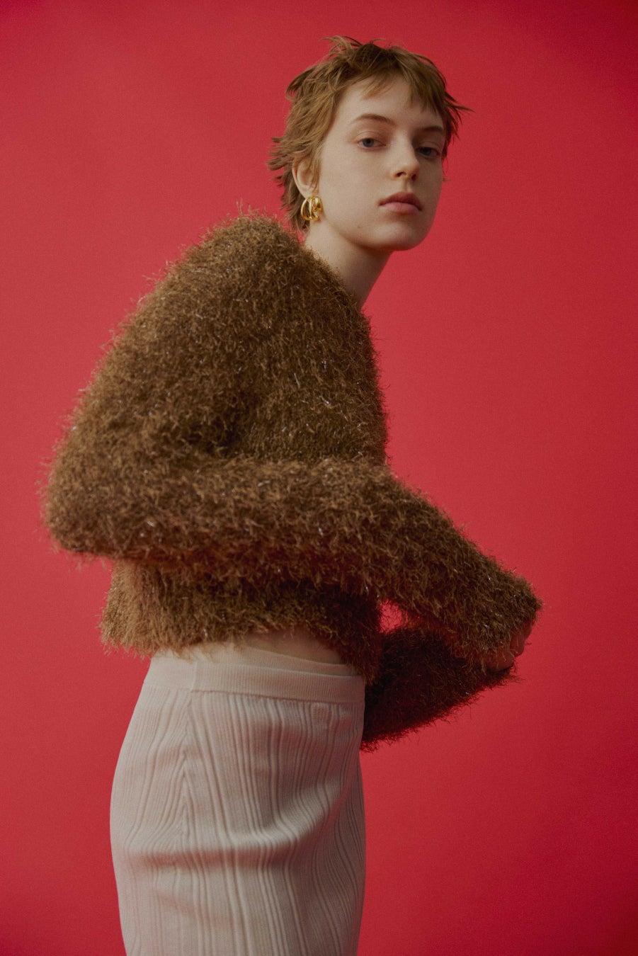プレイフルなカラーはもちろん、ニットやファー・レザーやヘリンボーンなど、秋ムード高まるファブリックを楽しみながら、クリーンでエレガントなコレクションを展開