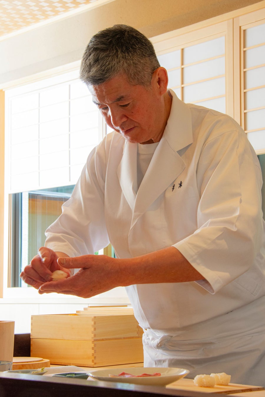 昭和39年生まれ。『銀座 鮨青木』二代目店主。大学卒業後、アメリカへ遊学。帰国後は京橋『与志乃』に入り、2年の修業ののち『鮨青木』に入店。父のもとで学び、29歳で店を継ぐ。