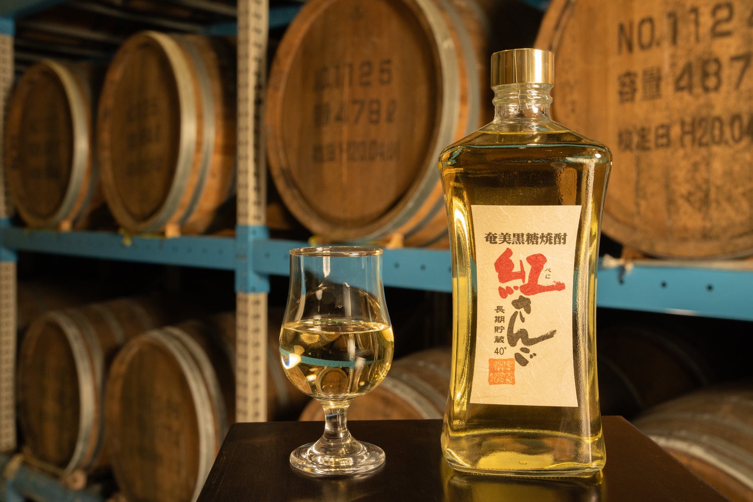奄美大島開運酒造の『紅さんご』は、原種をホワイトオークの樽でじっくり寝かせた琥珀色の酒。濃厚で奥深い甘味を持つ。