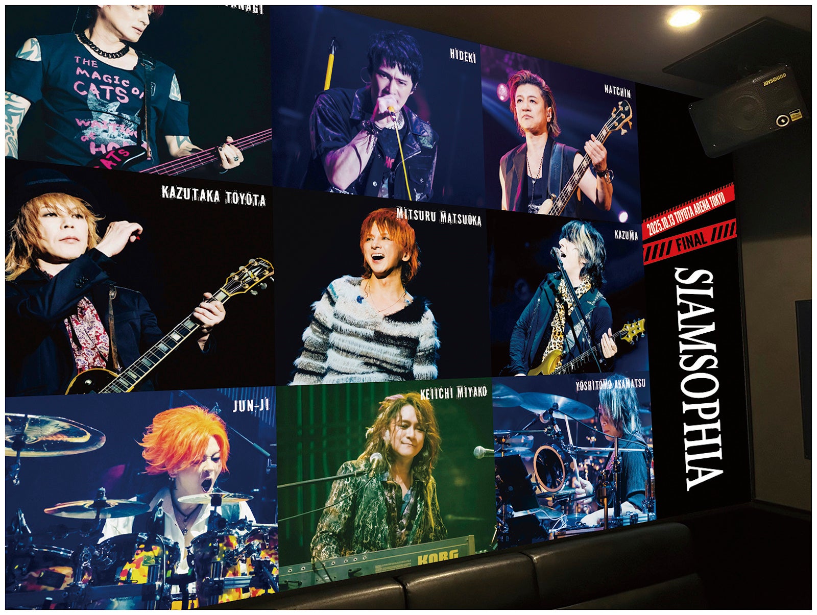 カラオケコラボルームは、ルーム内の壁面やテーブル、ドアに至るまで、「SIAMSOPHIA」の世界観で彩られ、ファンには堪らない空間となっております。