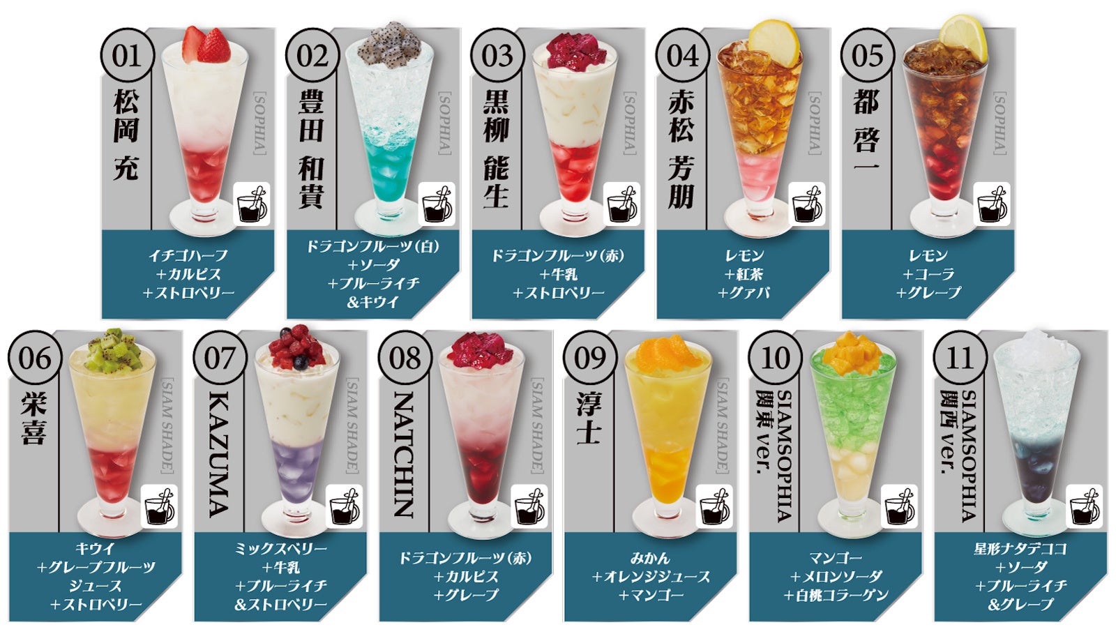 コラボドリンクは、「SIAMSOPHIA」をイメージした全11種をご用意します。