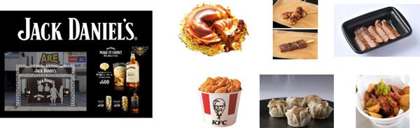 ・ジャックダニエルブース ・キャストコレクション ・牛たん炭焼 利久 ・鶴橋風月 ・ケンタッキーフライドチキン ・京のお肉処 弘 ・キッチンカー 他