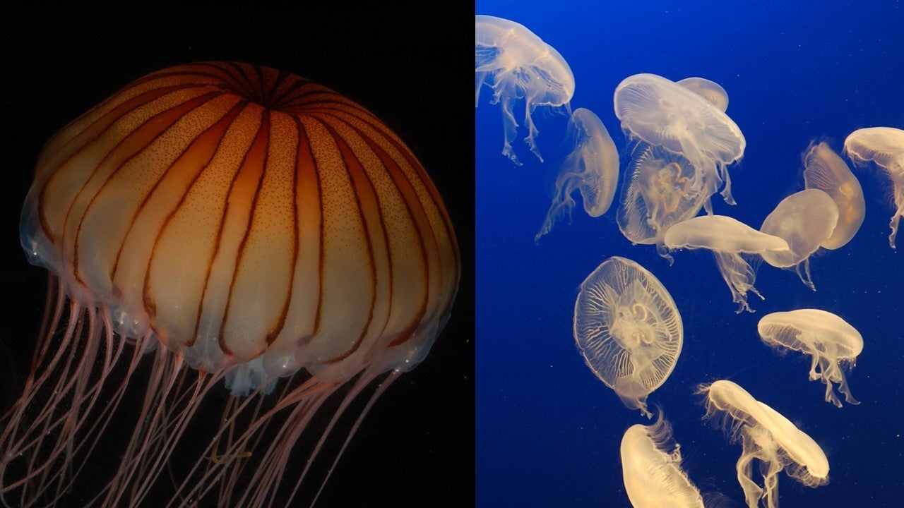 神秘的で個性的なクラゲを会場に展示します。クラゲの多様性が分かるような、色や形、体のつくりや生態などが異なる3〜4種のクラゲを展示。