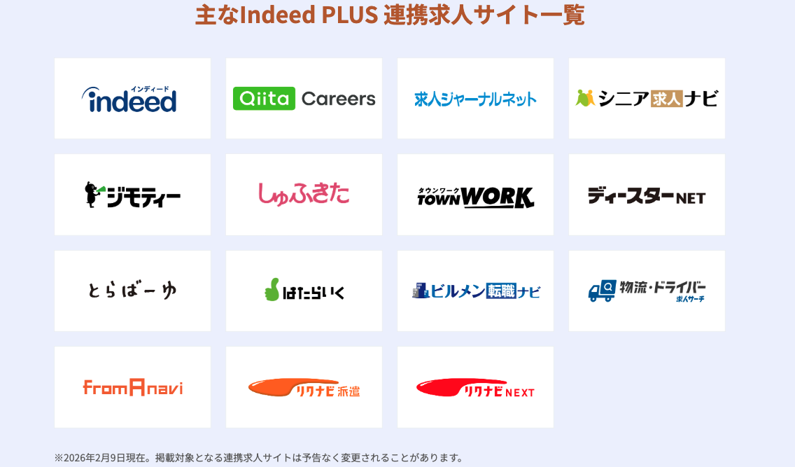 ※「Indeed PLUS」と連携中の求人サイトの実績より参照(2026年2月現在)
