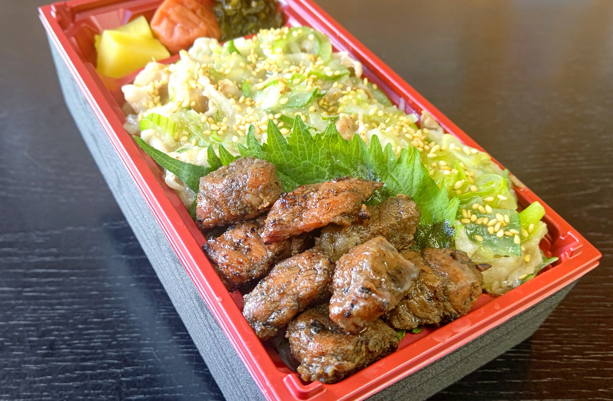 さっぱりとした味の自家製塩だれを使用した薄切りの黒豚肉と、看板商品のみそ漬をサイコロ状にカットして炭火で香り高く焼き上げた2種類の味を楽しめるお弁当です。お米には宮崎県小林市「ひのひかり」、黒豚肉には自社農場産桑水流黒豚を使用しています。