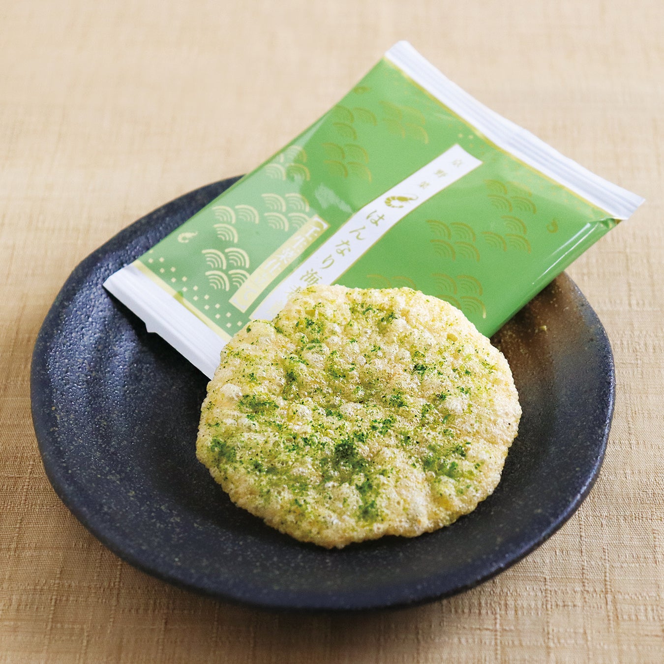 京の伝統野菜「壬生菜」と香り髙い天然えびを使用し、二度熟成を経てサクッと軽い食感に仕上げた京風おせんべいです。ソフトな仕上がりになっていますので、小さなお子さまからご年配の方まで幅広い世代に好評です。